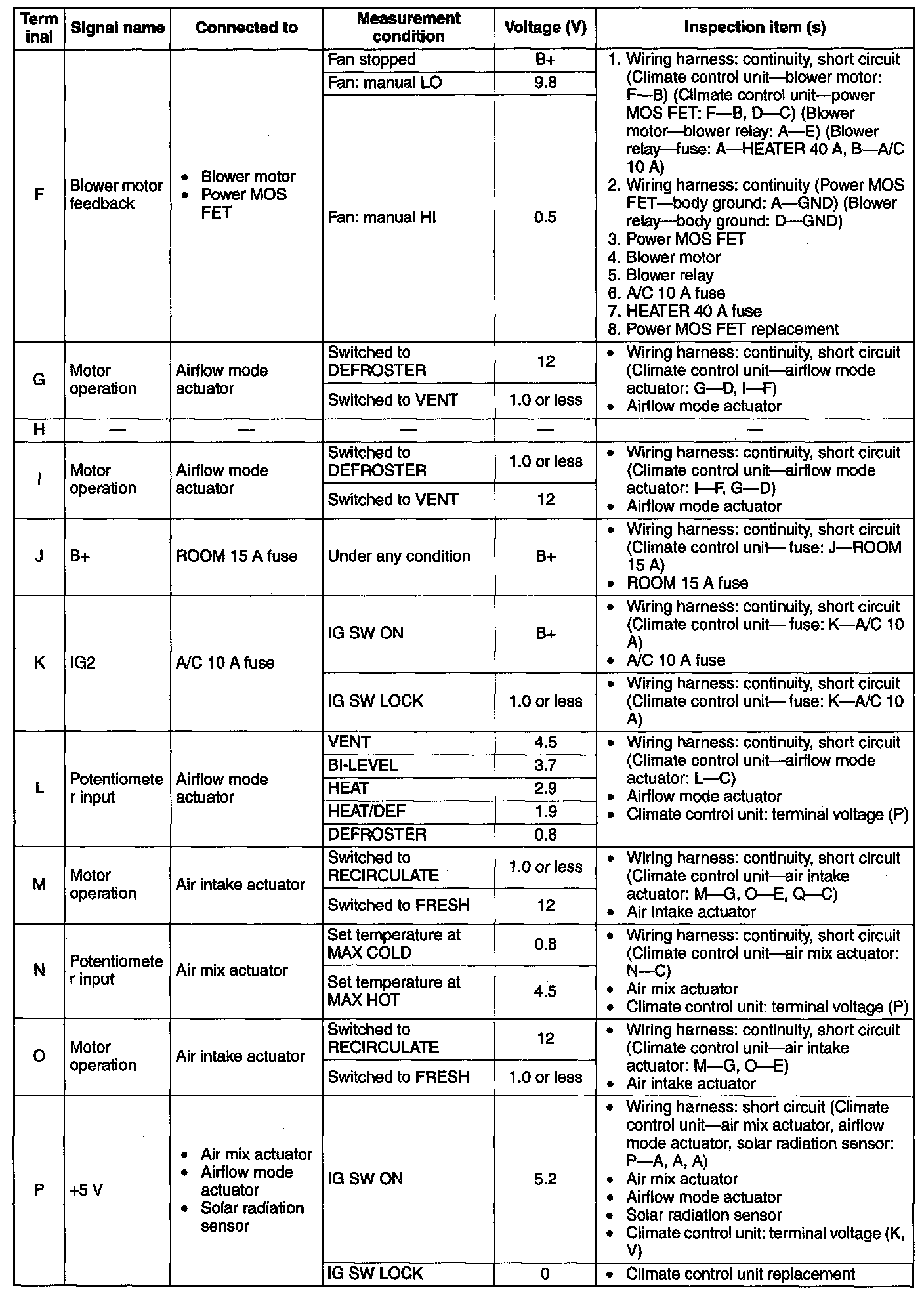 Terminal Voltage Table (Reference) (Part 2):