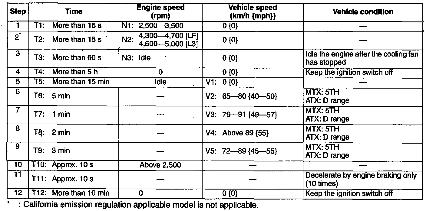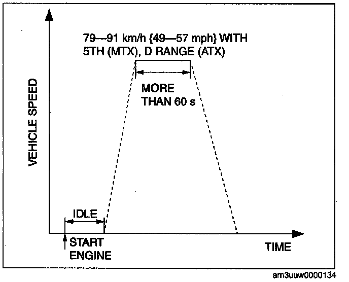 6. Drive the vehicle at an engine speed of 65-80 km/h {40-50 mph} for more than 5 min.