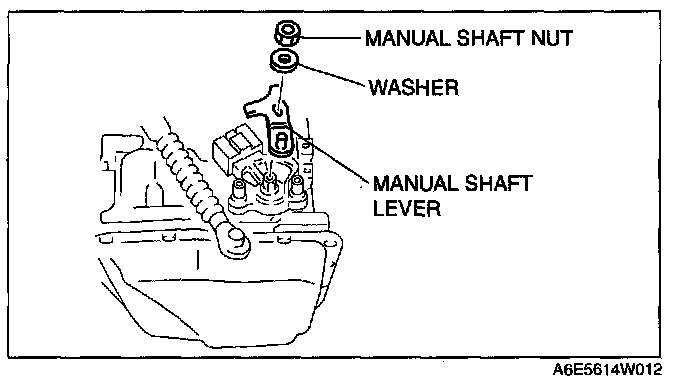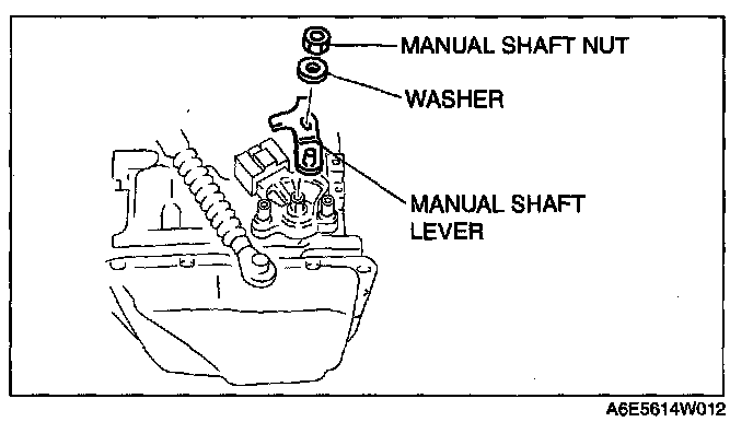^ Do not use an impact wrench. Hold the manual shaft lever when removing the manual shaft nut, or the transaxle may be damaged.