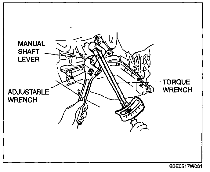 ^ Do not use an Impact wrench. Hold the manual shaft lever when removing the manual shaft nut, or the transaxle may be damaged.