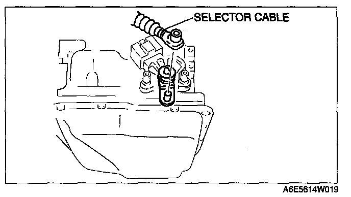 5. Remove the clip and disconnect the selector cable.