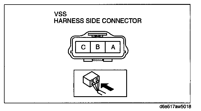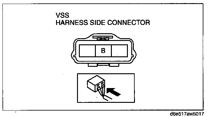 3. Measure voltage at VSS connector terminal B (wiring harness side).