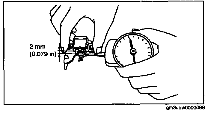 2. Read the spring pressure gauge at the brush tip projection of 2 mm (0.079 in).