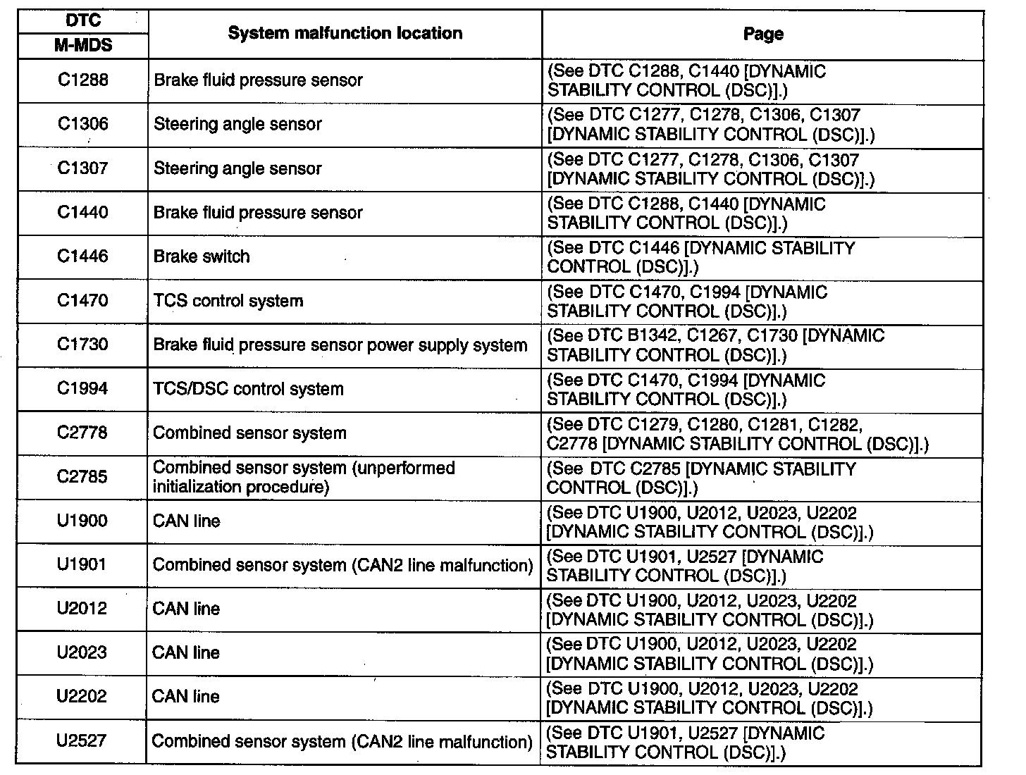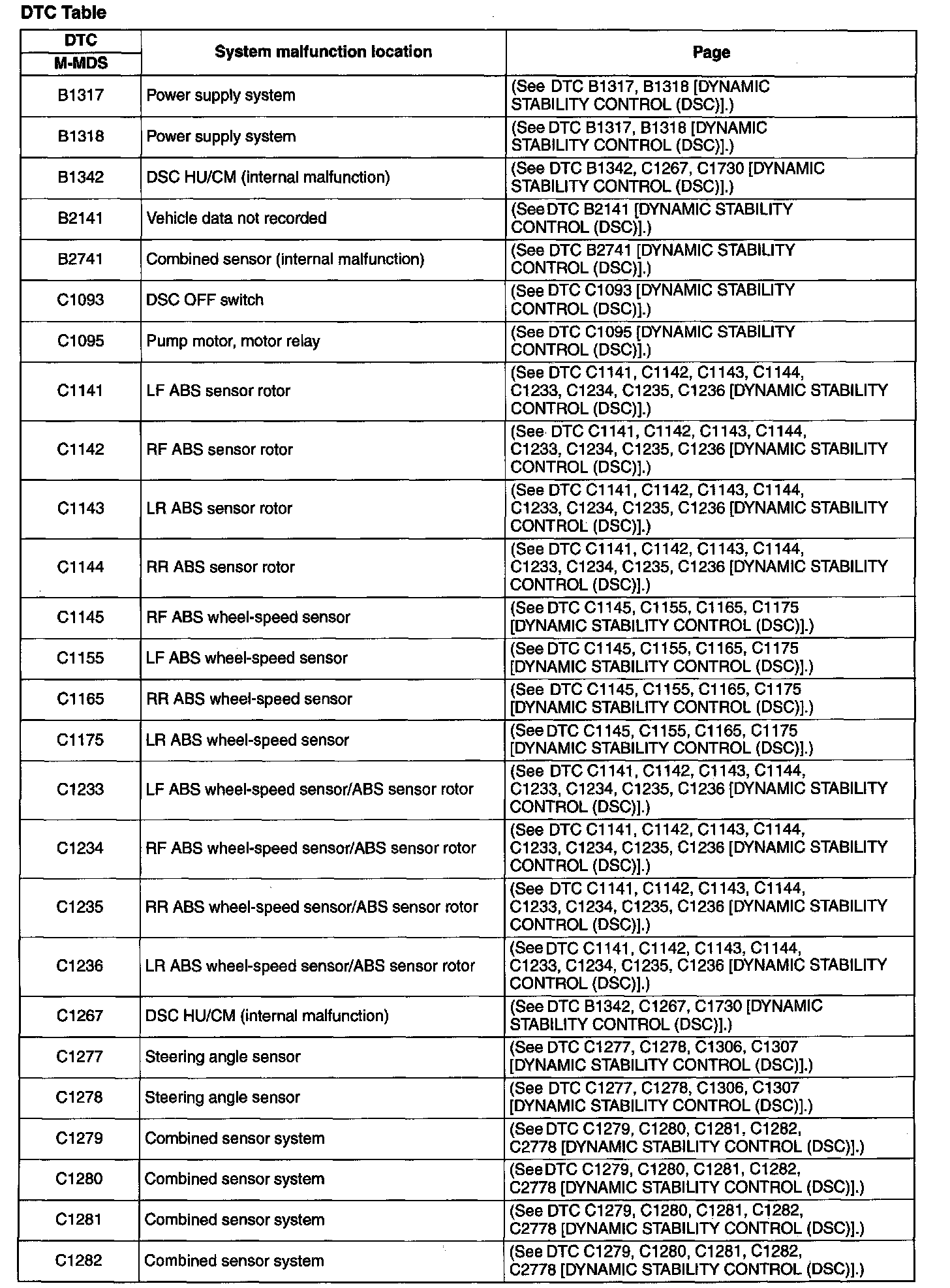 DTC Table (Part 1):