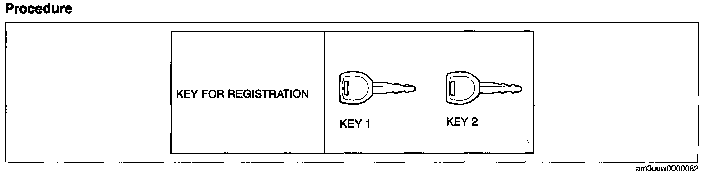 1. Using any key, turn the ignition switch to the ON position. (Either a valid or an unregistered key can be used.)