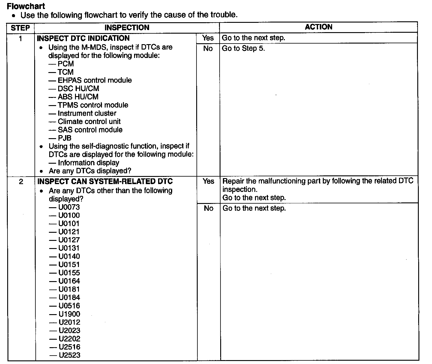 - If the controller area network (CAN) system is malfunctioning, read the DTCs of the following modules, using the M-MDS to determine the malfunctioning system.