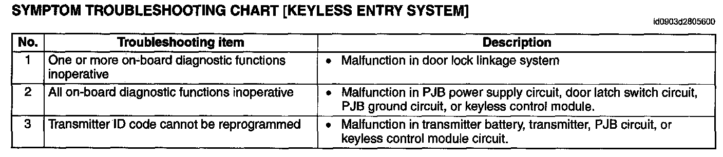 Symptom Troubleshooting Chart [Keyless Entry System]: