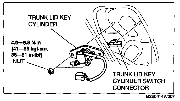 5. Remove the nuts, then remove the trunk lid key cylinder.