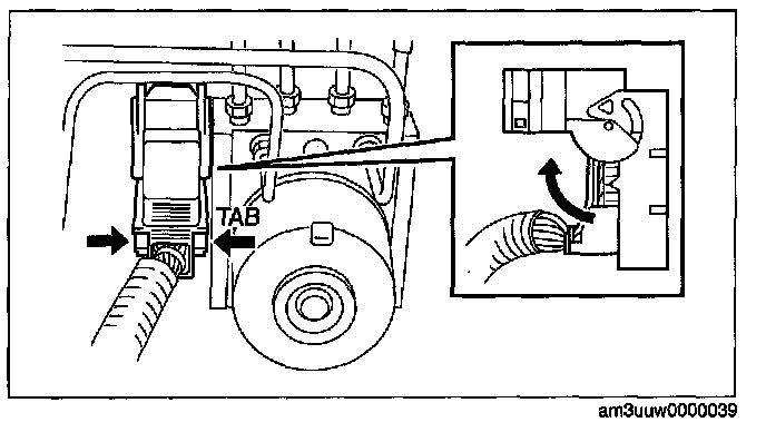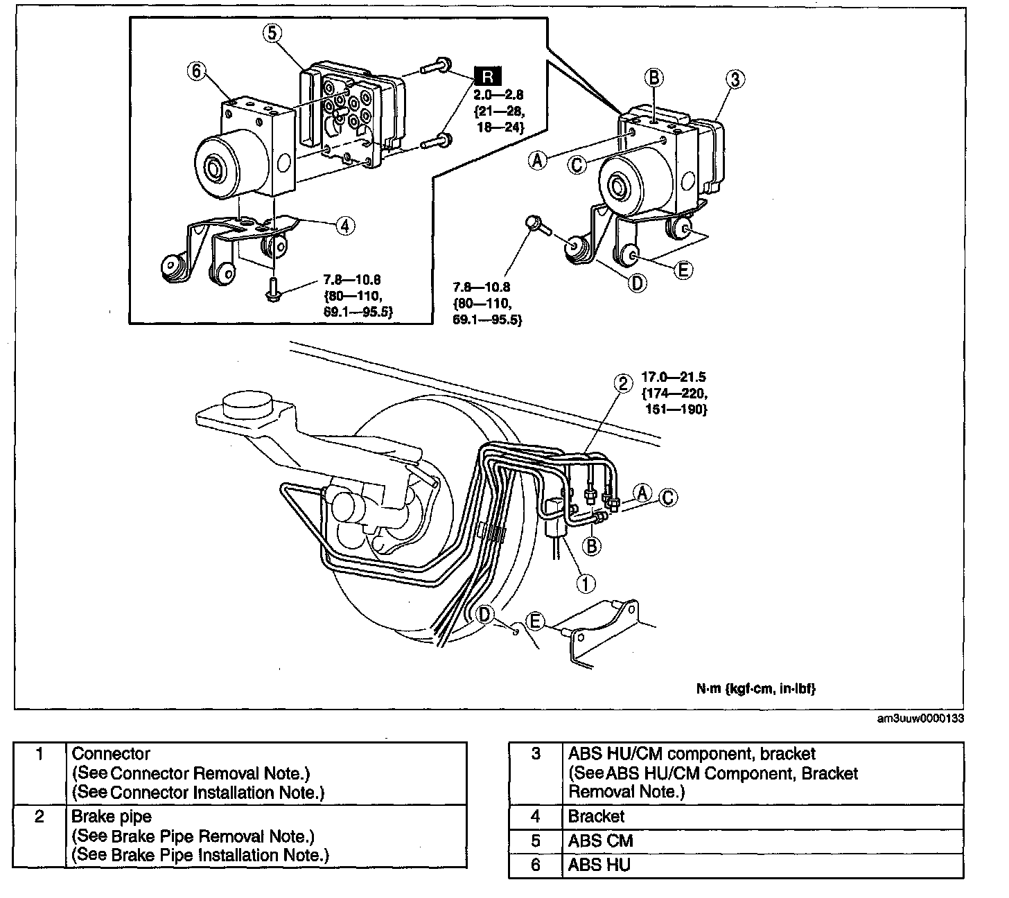 ^ When replacing the ABS HU/CM, the configuration procedure must be done before removing the ABS HU/CM. If the configuration is not completed before removing the ABS HU/CM, ABS will not work properly after installation of the ABS HU/CM.