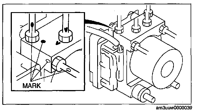 1. Place an alignment mark on the brake pipe and ABS HU/CM.
