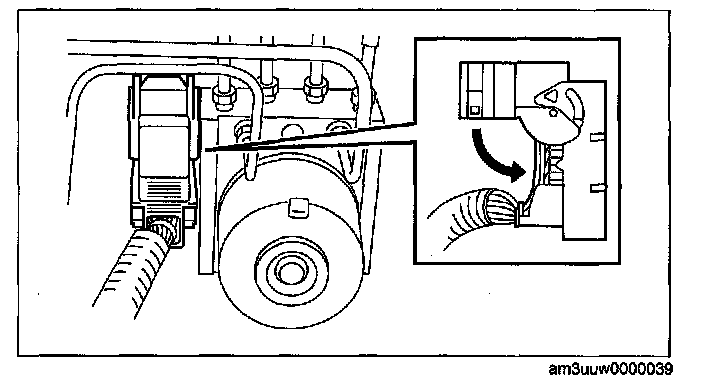 1. As shown in the figure, move the bracket in the direction of the arrow and remove the ABS HU/ CM component and bracket from the body.