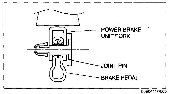 1. Install the new joint pin by aligning the pin holes of the brake pedal and power brake unit fork.