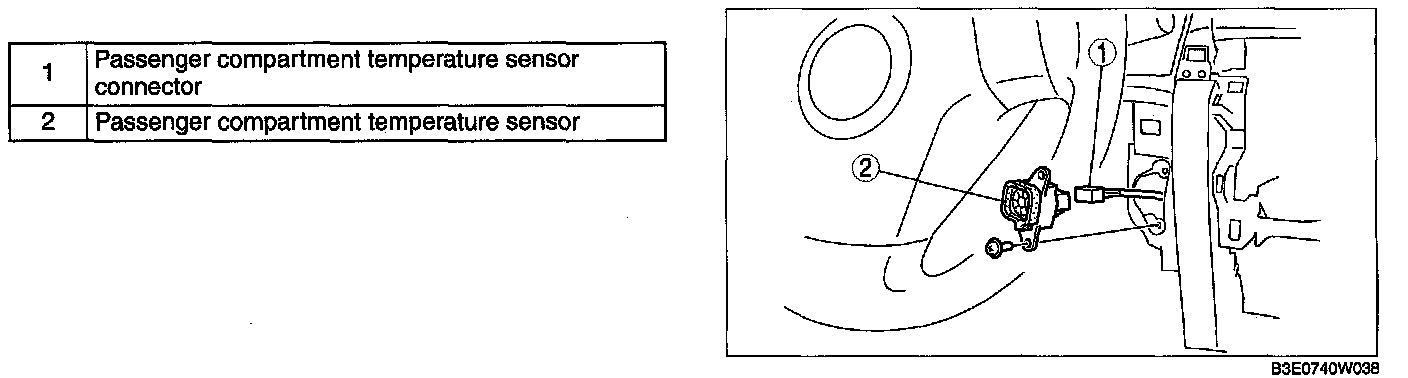 PASSENGER COMPARTMENT TEMPERATURE SENSOR REMOVAL/INSTALLATION1. Disconnect the negative battery cable.