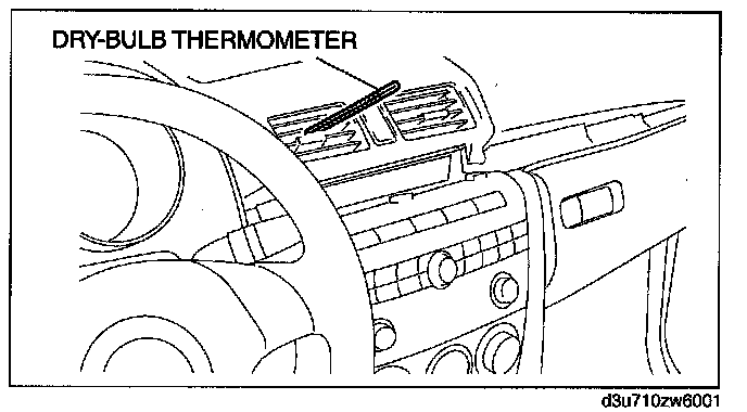 2. Place a dry-bulb thermometer in the driver-side center ventilator outlet.