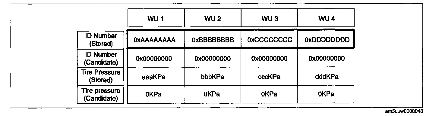 ^ When the vehicle is driven, the four ID numbers in the bold cell of the chart change at the same time the ID registration finishes.