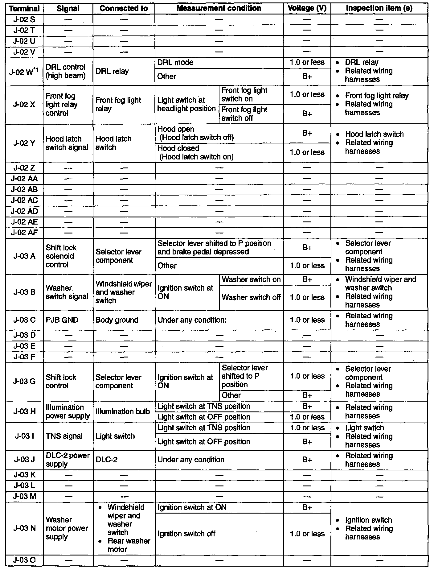 Terminal Voltage Table (Reference) (Part 10):