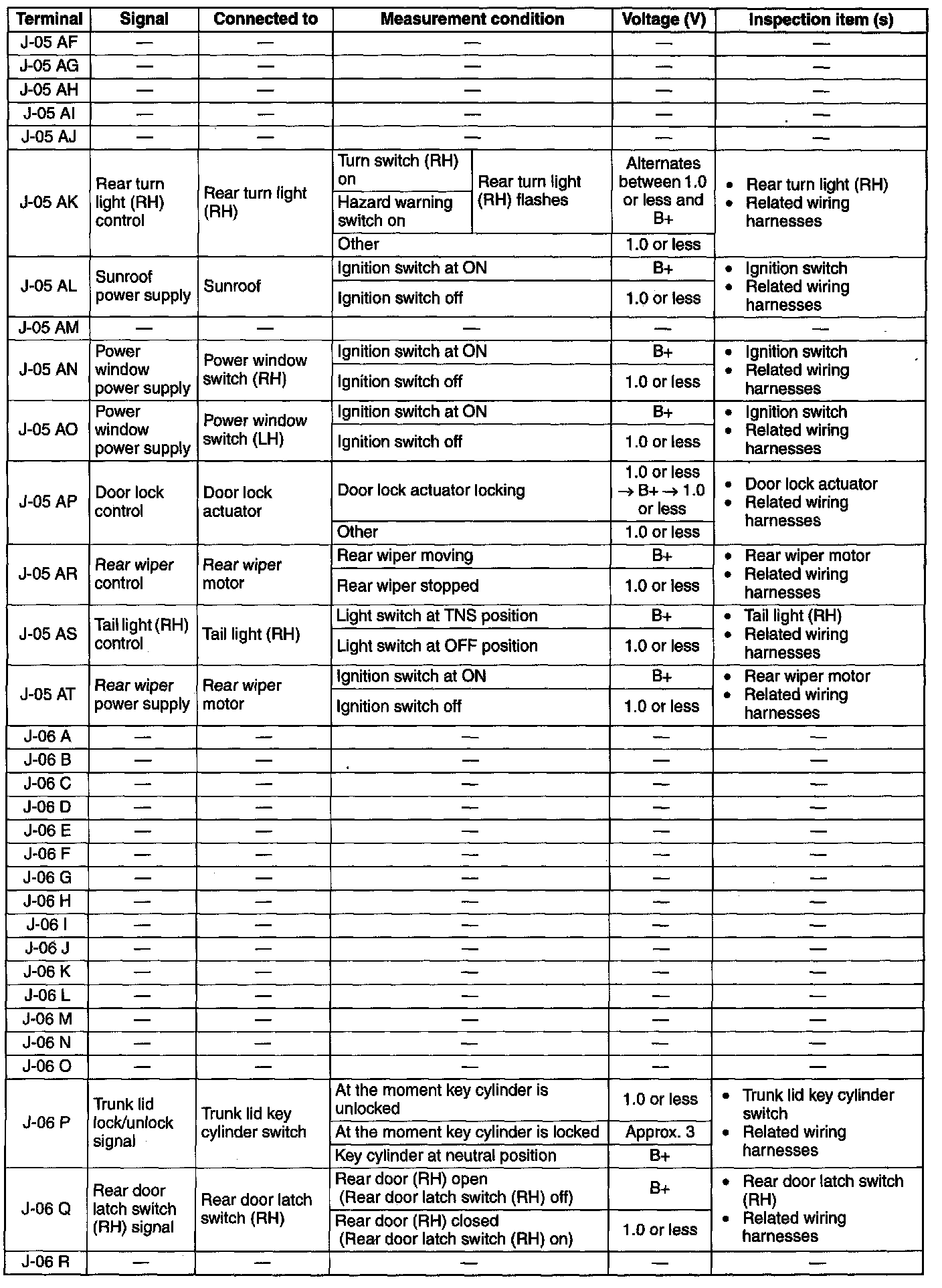 Terminal Voltage Table (Reference) (Part 6):