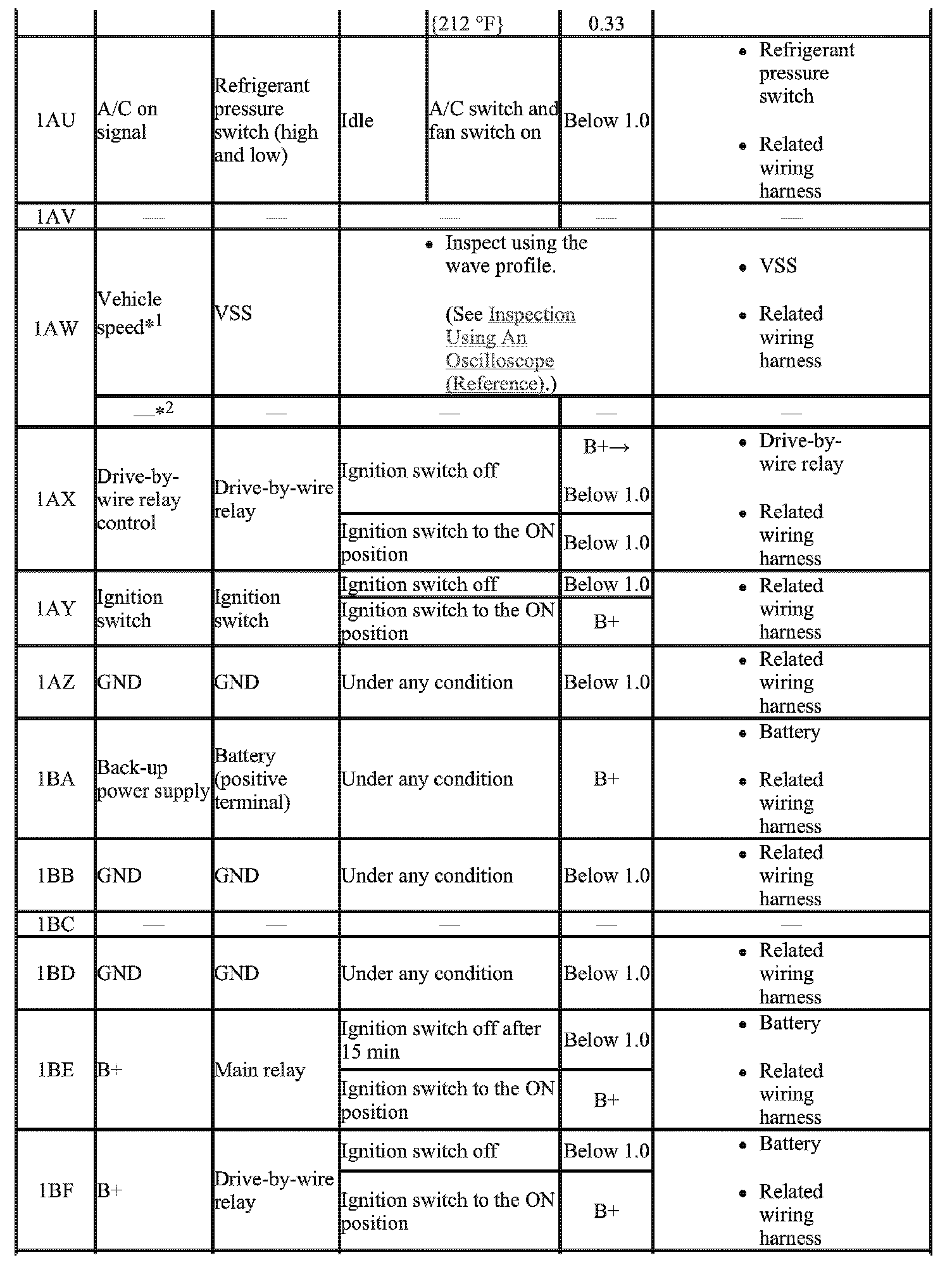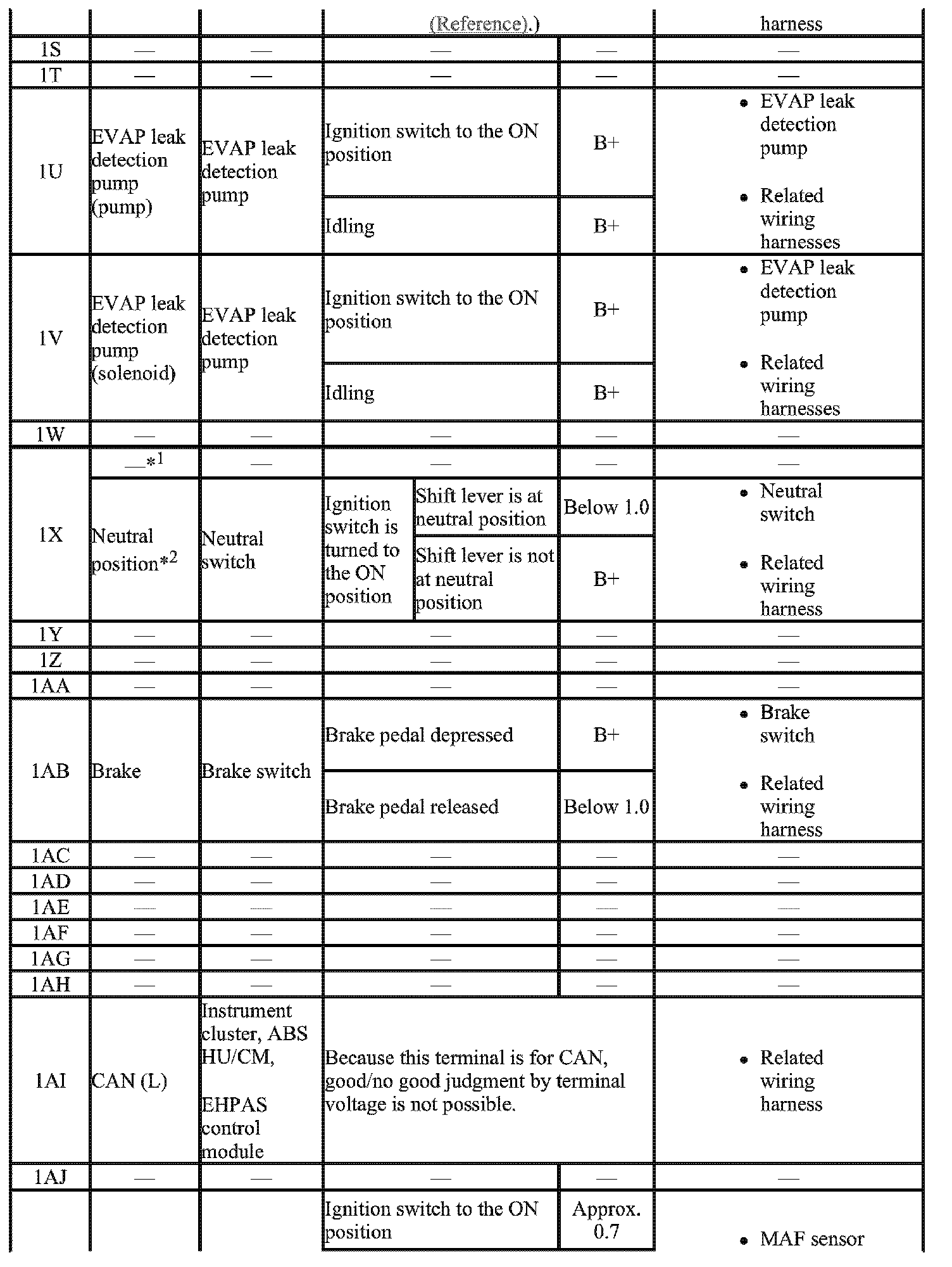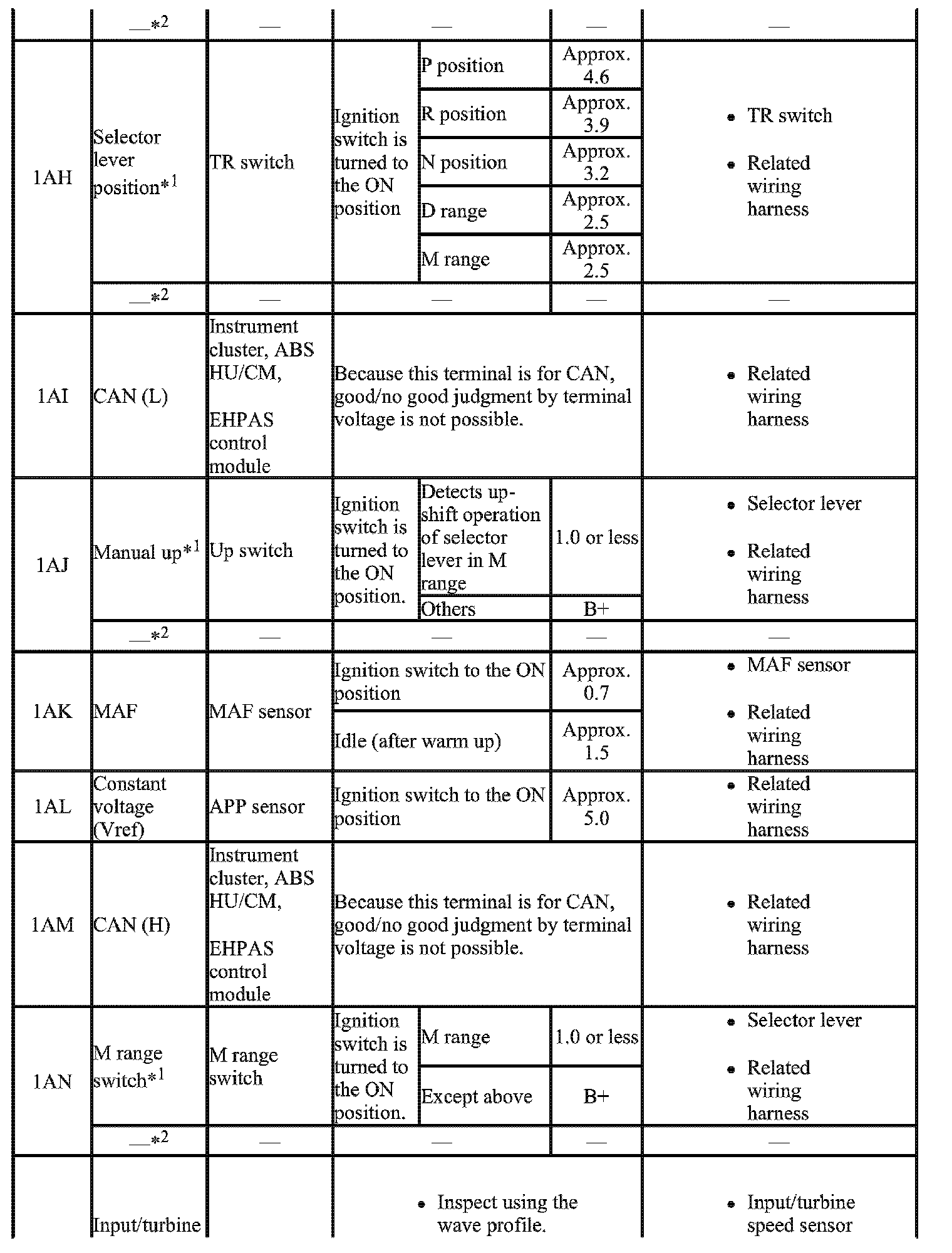 - The PCM terminal voltage can vary with the conditions when measuring and changes due to aged deterioration on the vehicle, causing false diagnosis. Therefore determine comprehensively where the malfunction occurs among the input systems, output systems, and the PCM.