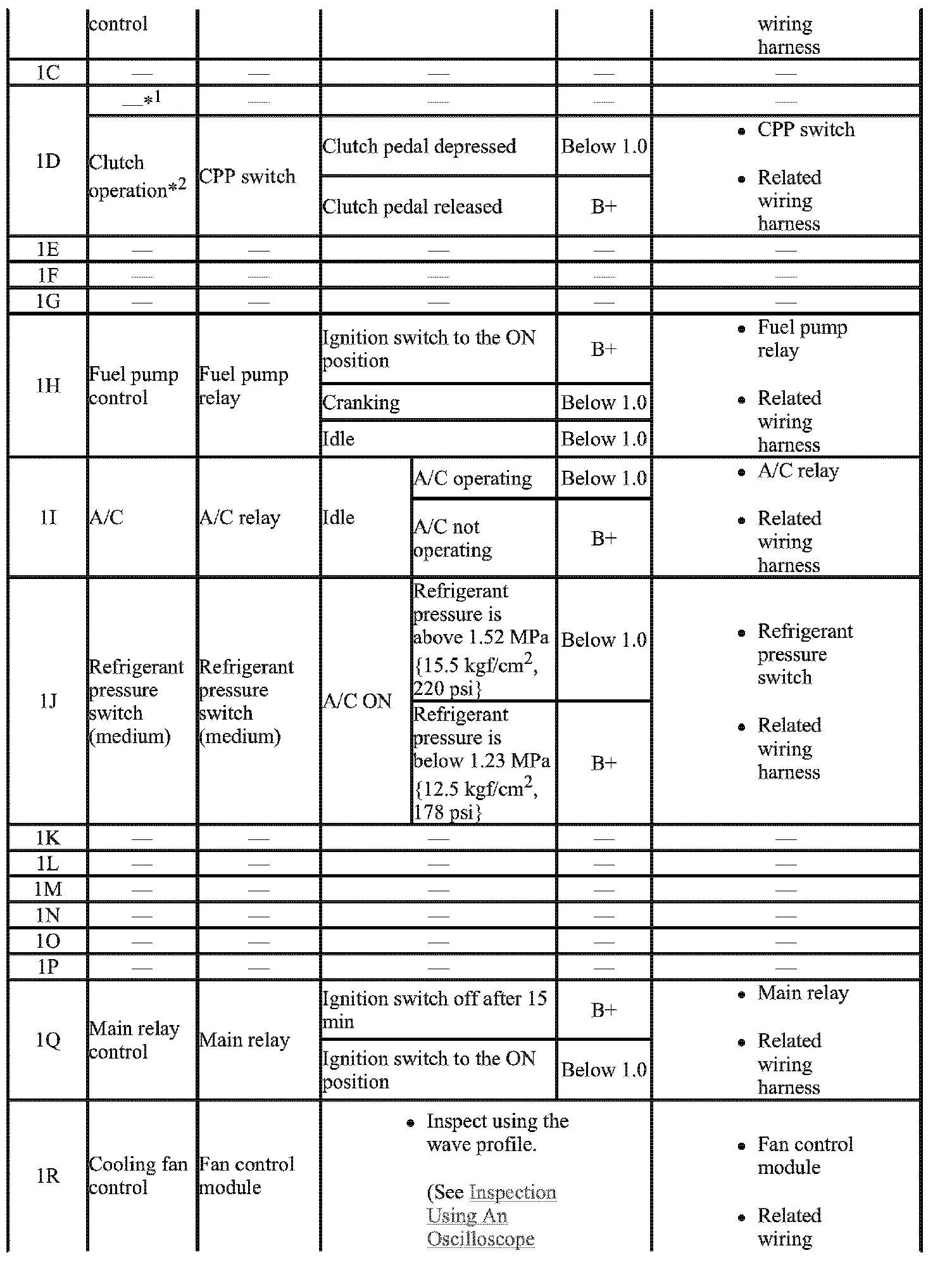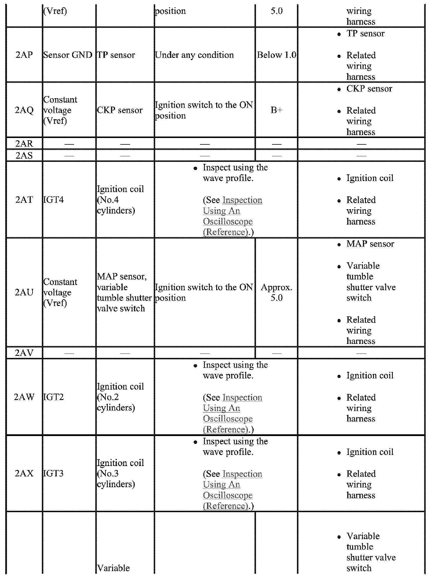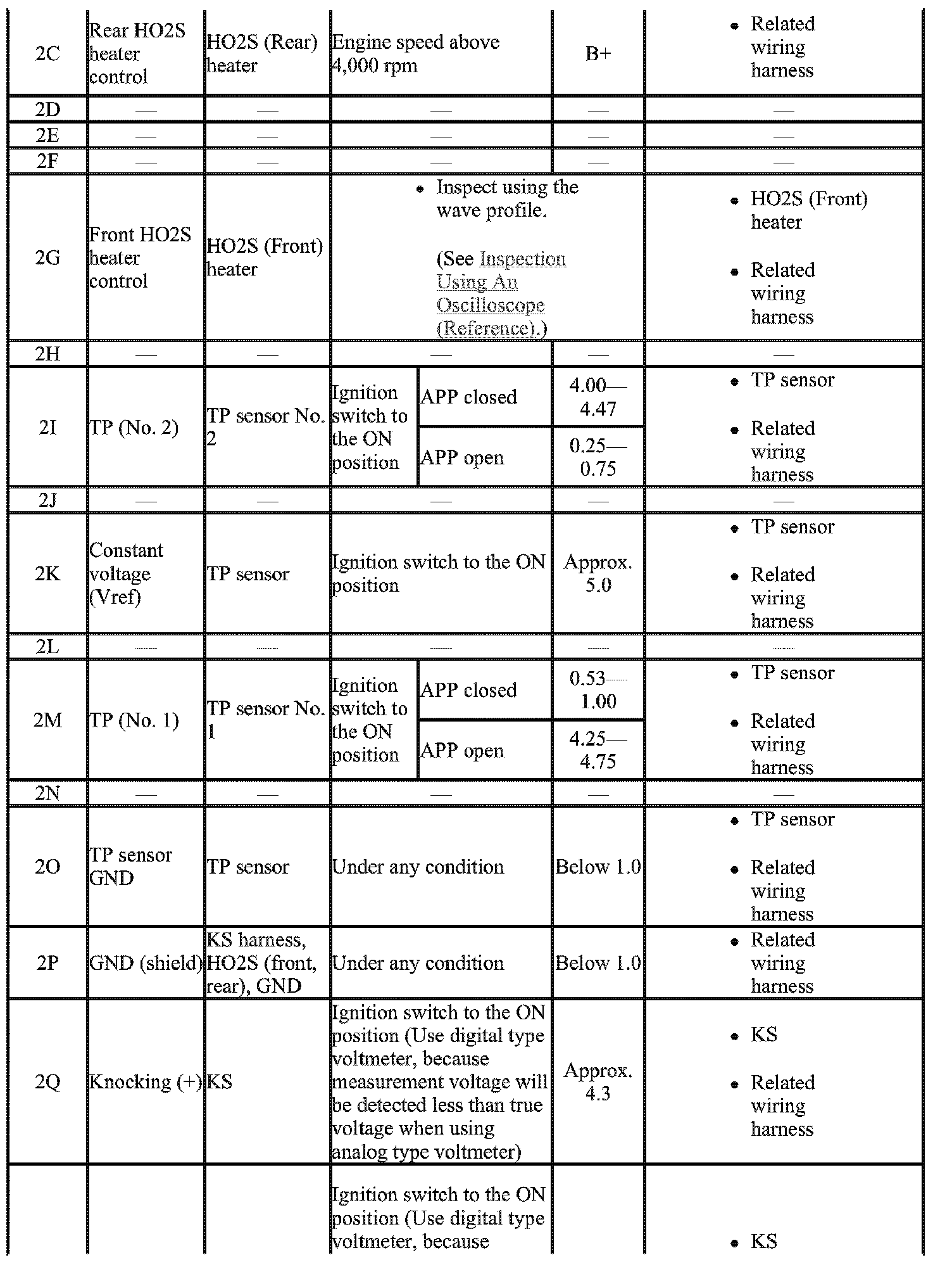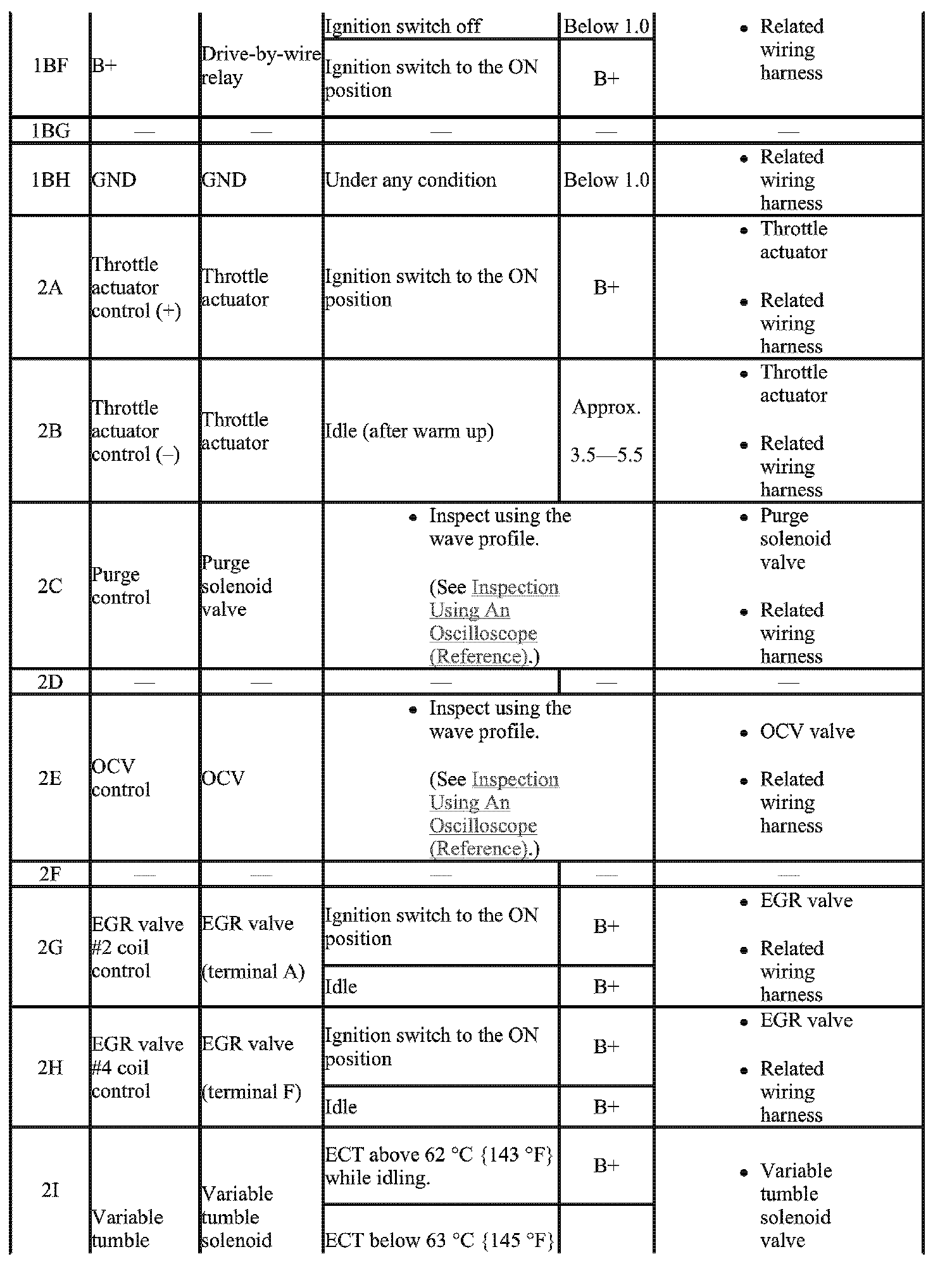- The PCM terminal voltage can vary with the conditions when measuring and changes due to aged deterioration on the vehicle, causing false diagnosis. Therefore determine comprehensively where the malfunction occurs among the input systems, output systems, and the PCM.