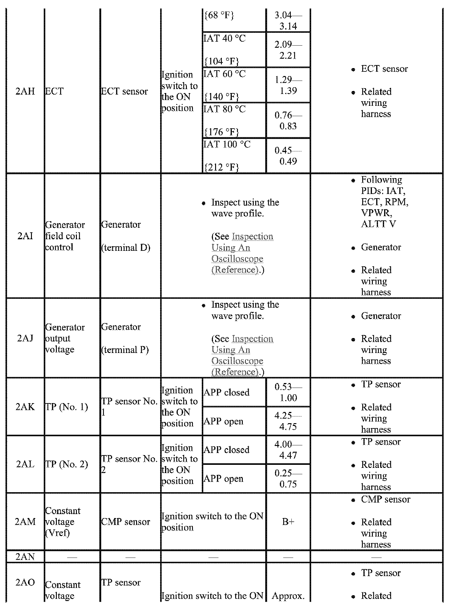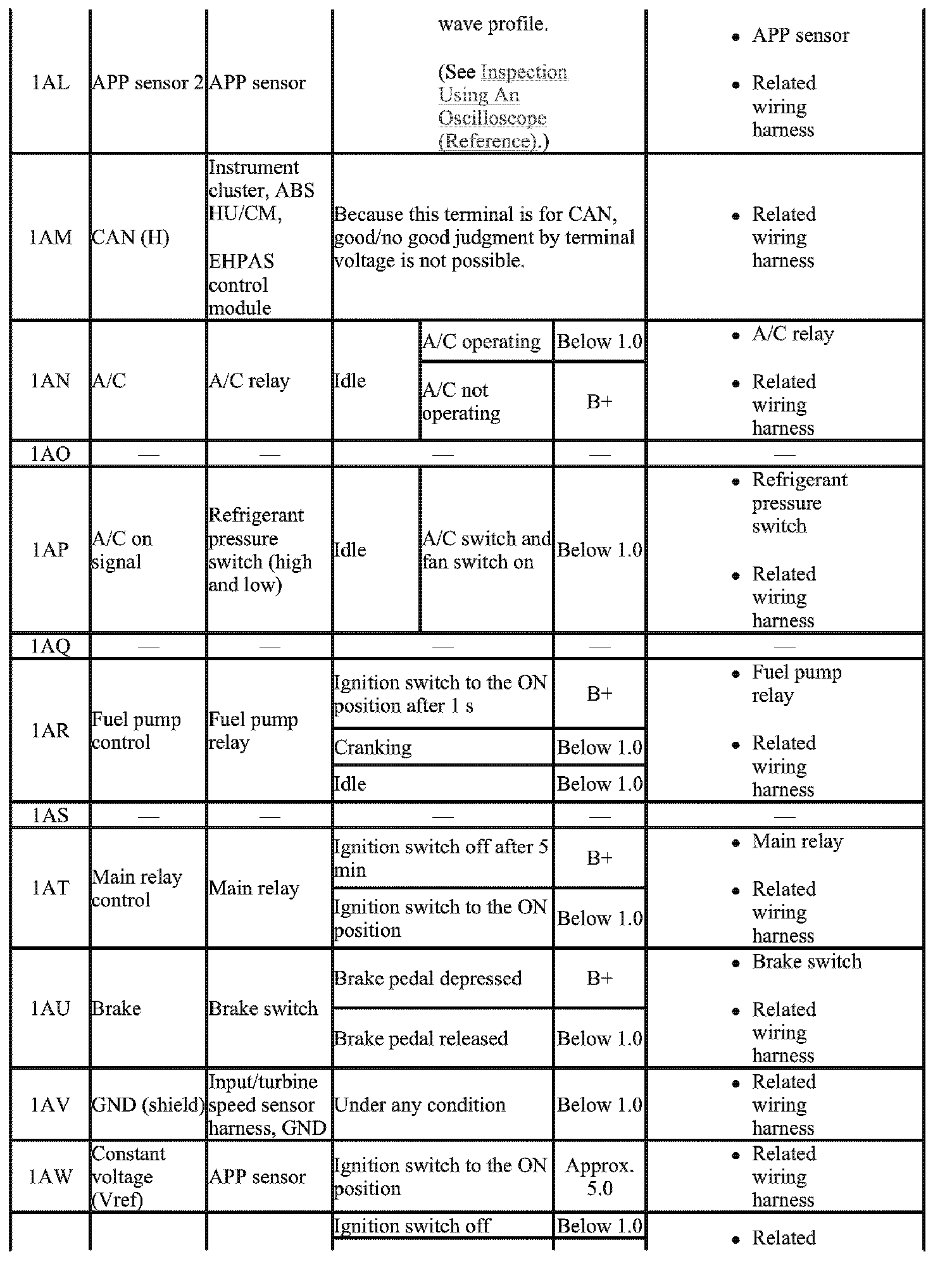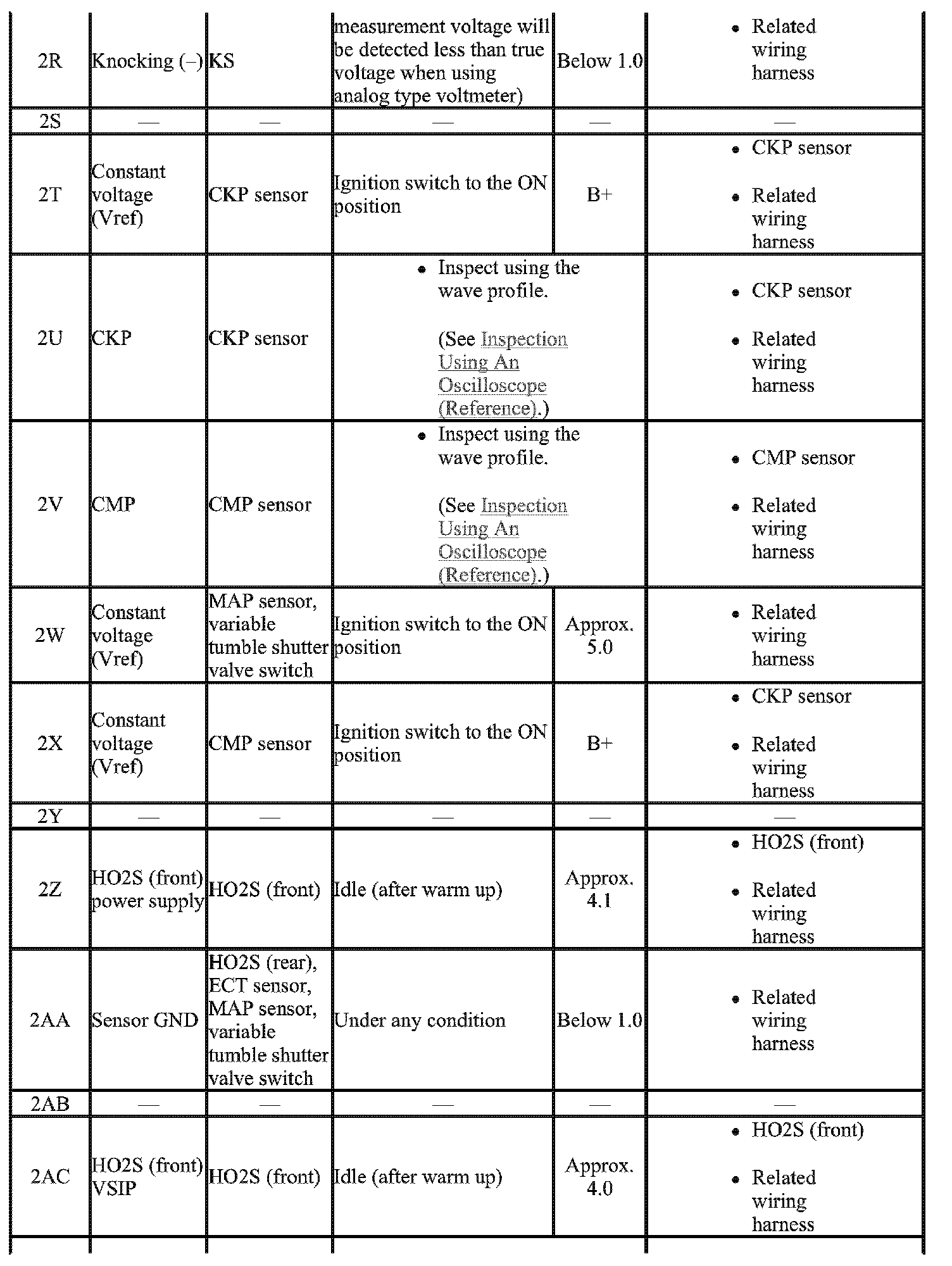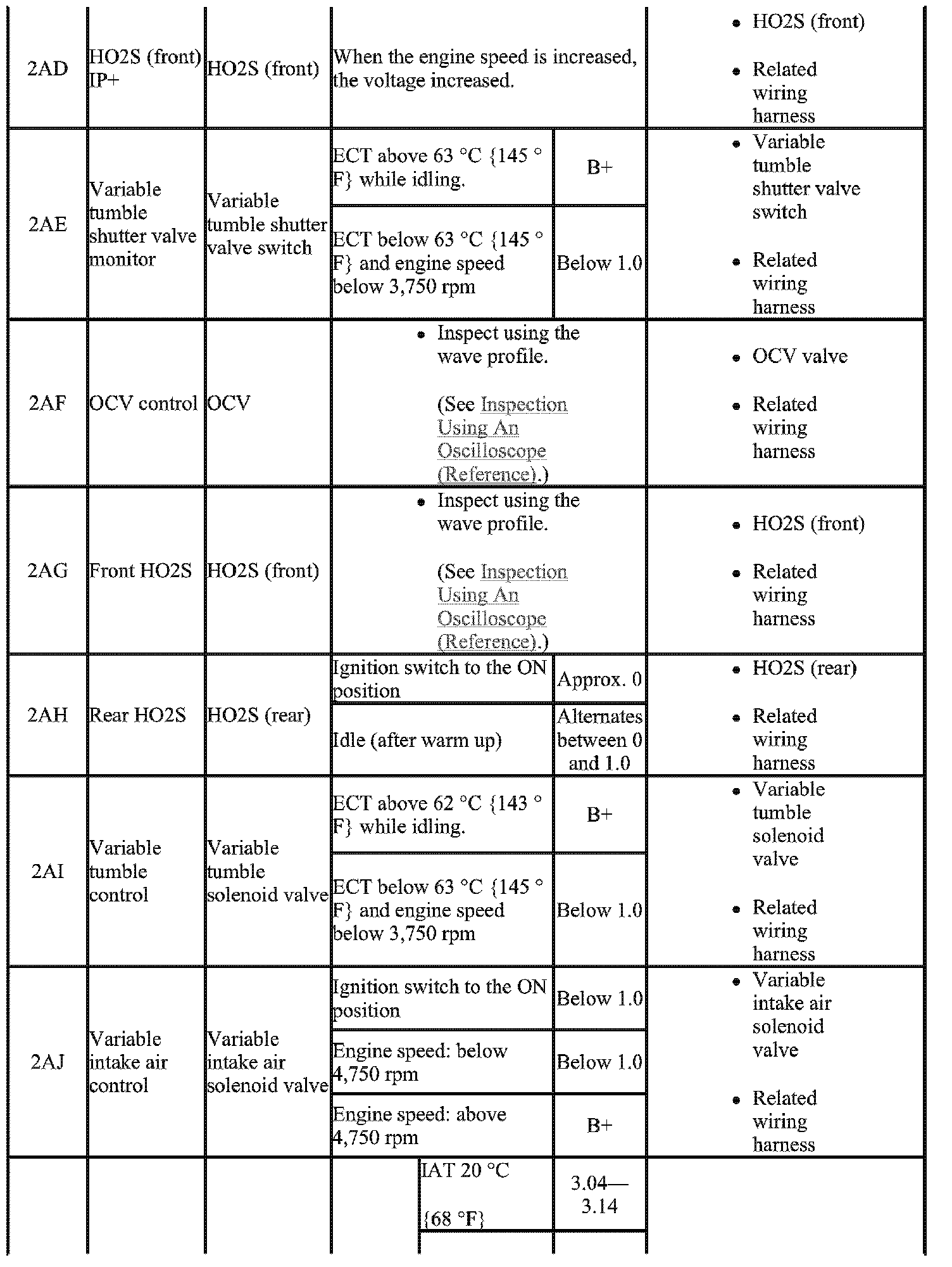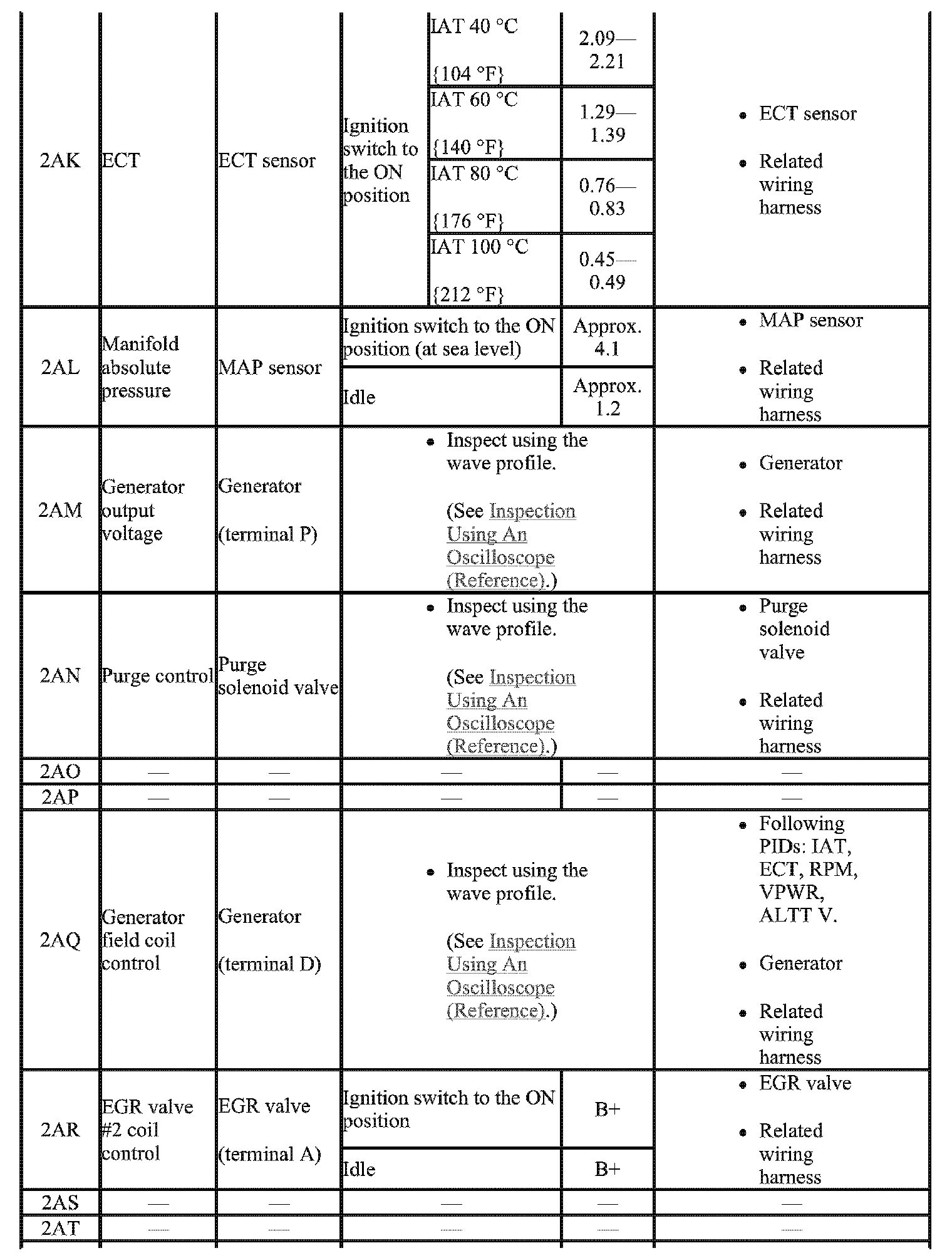 - The PCM terminal voltage can vary with the conditions when measuring and changes due to aged deterioration on the vehicle, causing false diagnosis. Therefore determine comprehensively where the malfunction occurs among the input systems, output Systems, and the PCM.