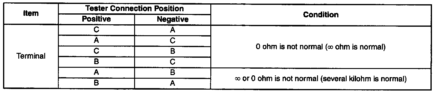 2. Measure the resistance between each terminal on the ignition coil connector using an analog circuit tester.