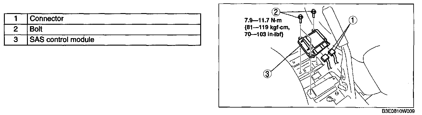 - If the SAS control module is replaced, turn the ignition switch to the ON position for 20 s or more after completing the configuration. (See SAS CONTROL MODULE CONFIGURATION.) Testing and Inspection