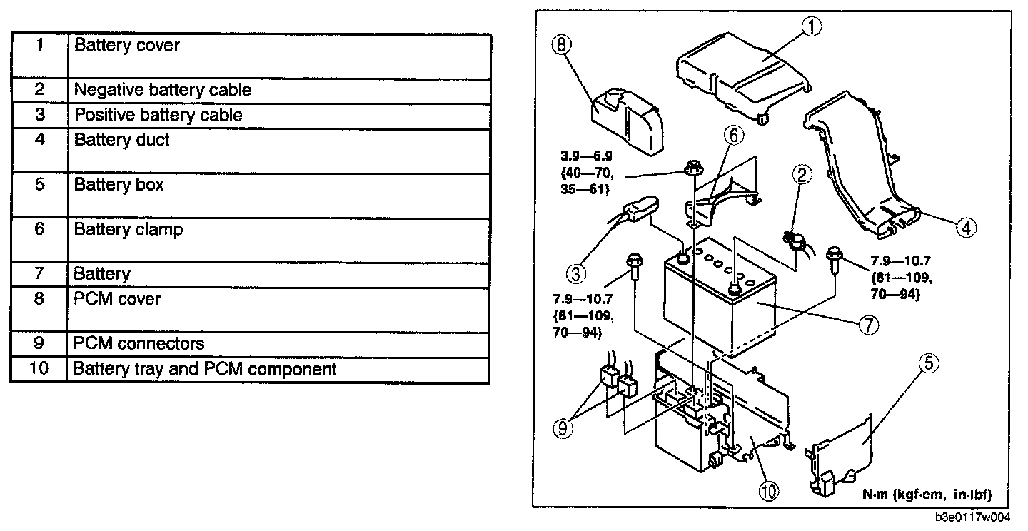 BATTERY REMOVAL/INSTALLATION [LF, L3]1. Remove in the order indicated in the table.