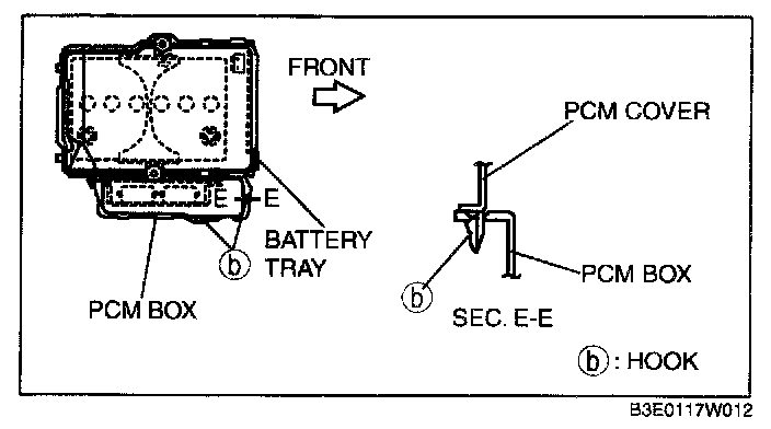 1. Install with PCM cover hooks B aligned with the PCM box holes at two points.