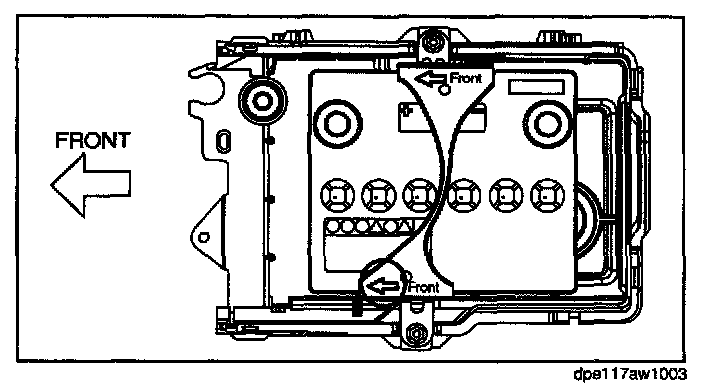 1. Assemble the battery clamp so that the arrow on it is pointed toward the front of the vehicle.
