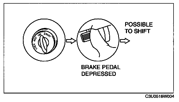 3. Without the brake pedal depressed, verify that the selector lever cannot be shifted from the P position.
