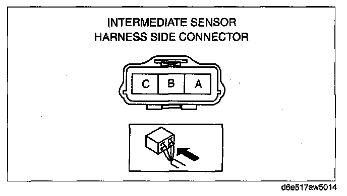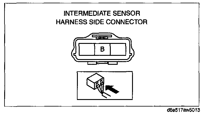 3. Measure voltage at intermediate sensor connector terminal B (wiring harness side).