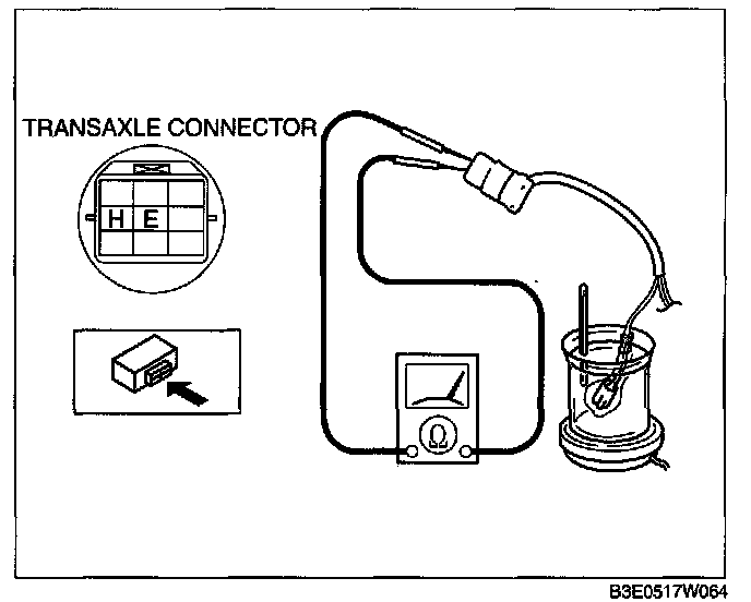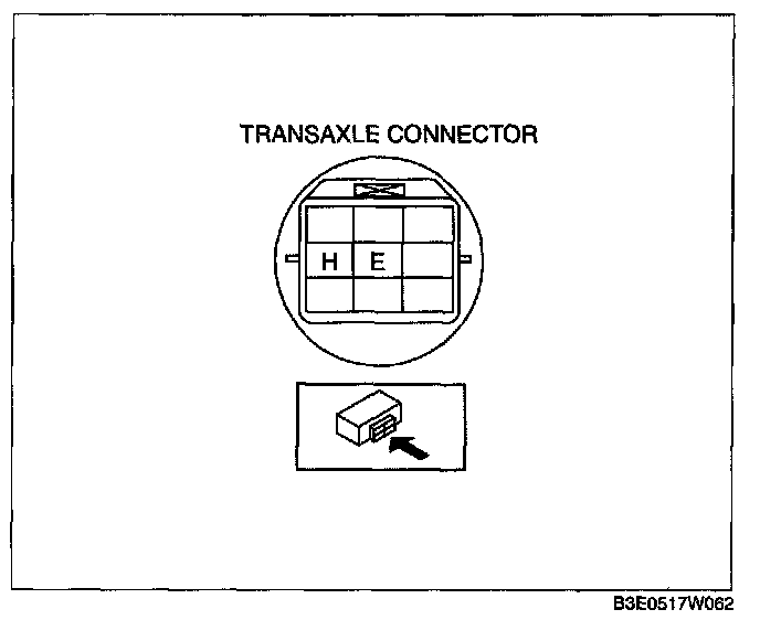 5. Measure the resistance between the transaxle connector terminals E and H.