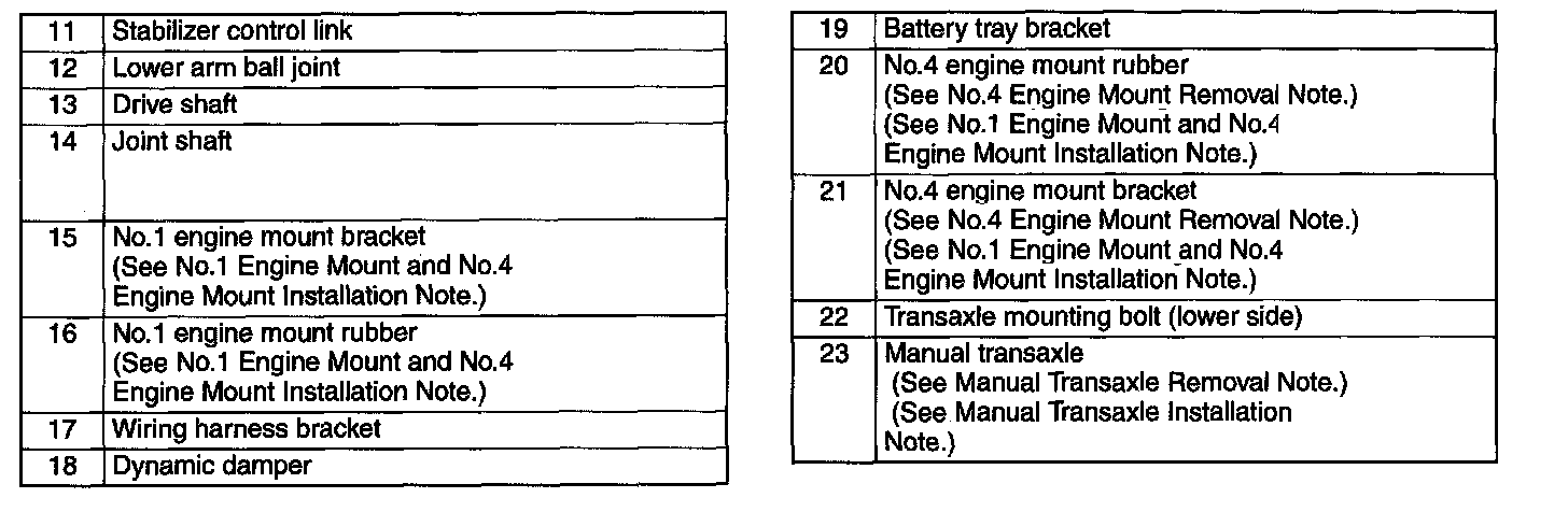 Manual Transaxle Removal Note
