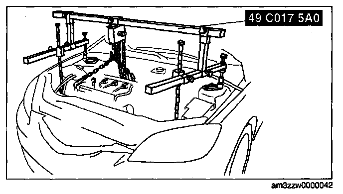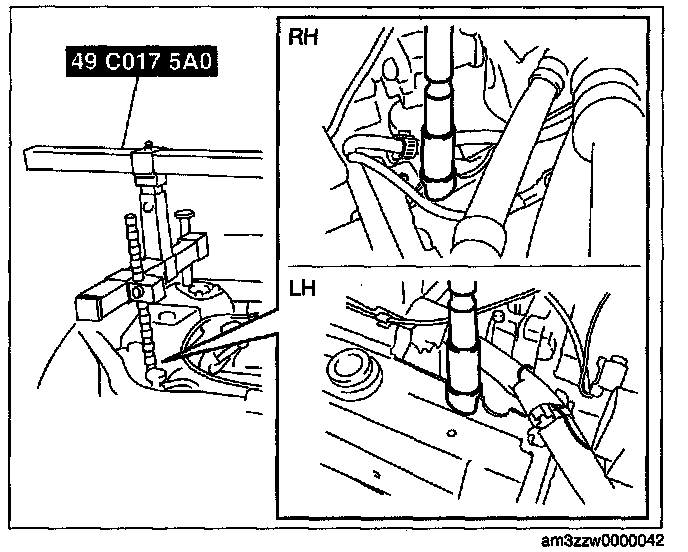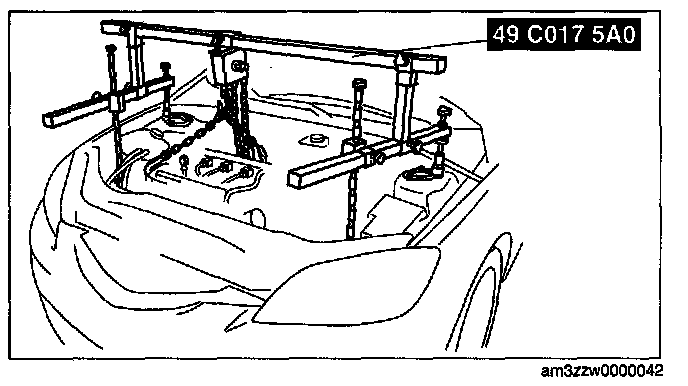 3. Adjust the SST (49 CO17 5A0) so that the engine is located at the specified position.