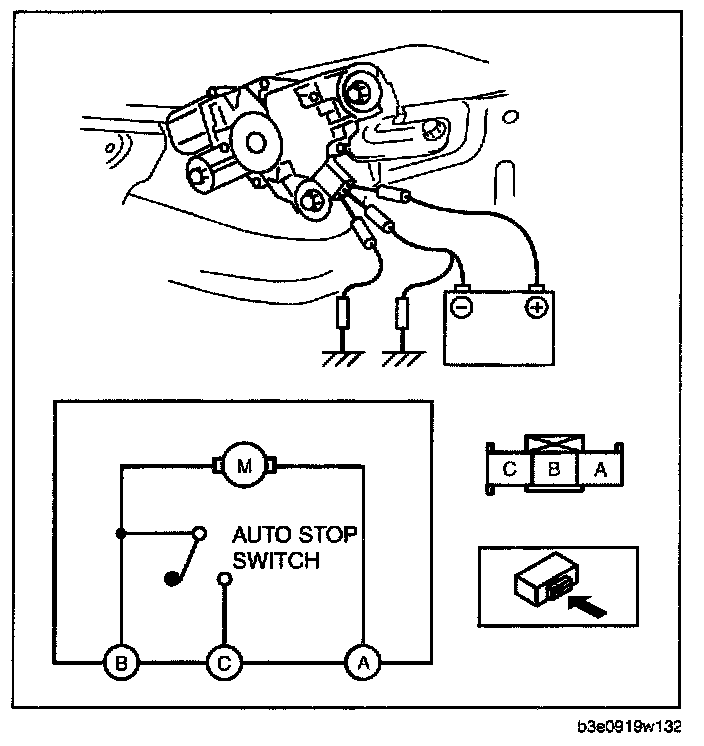 REAR WIPER MOTOR INSPECTION1. Connect battery positive voltage to the rear wiper motor terminal B, and ground the rear wiper motor terminal A.
