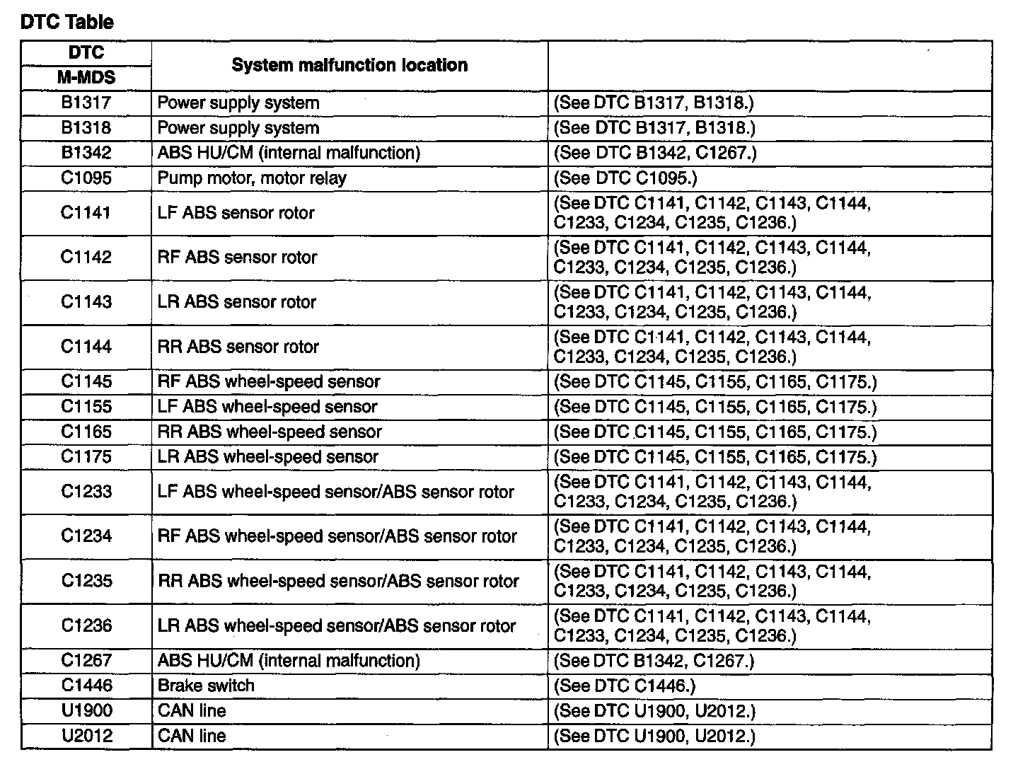 DTC Table