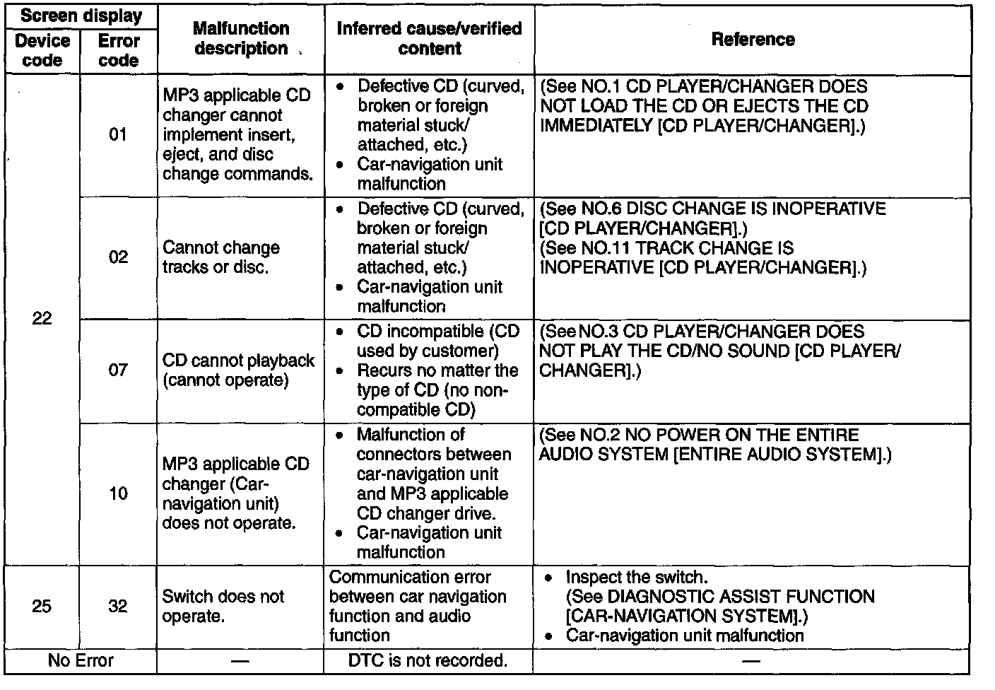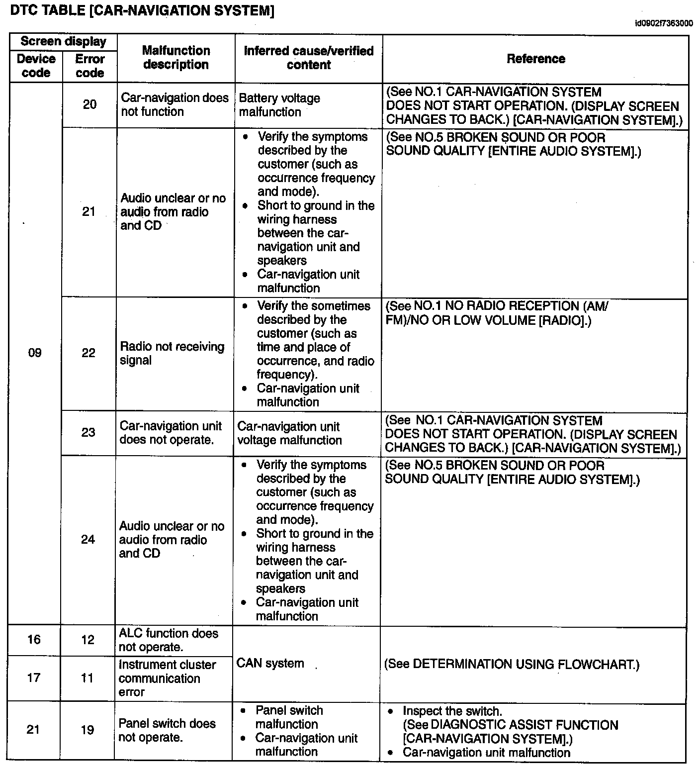 DTC Table [Car-Navigation System]