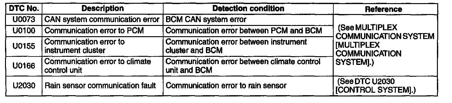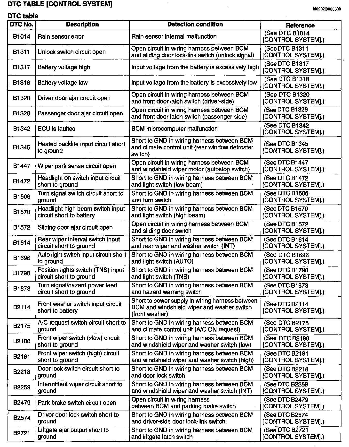 DTC Table [Control System]