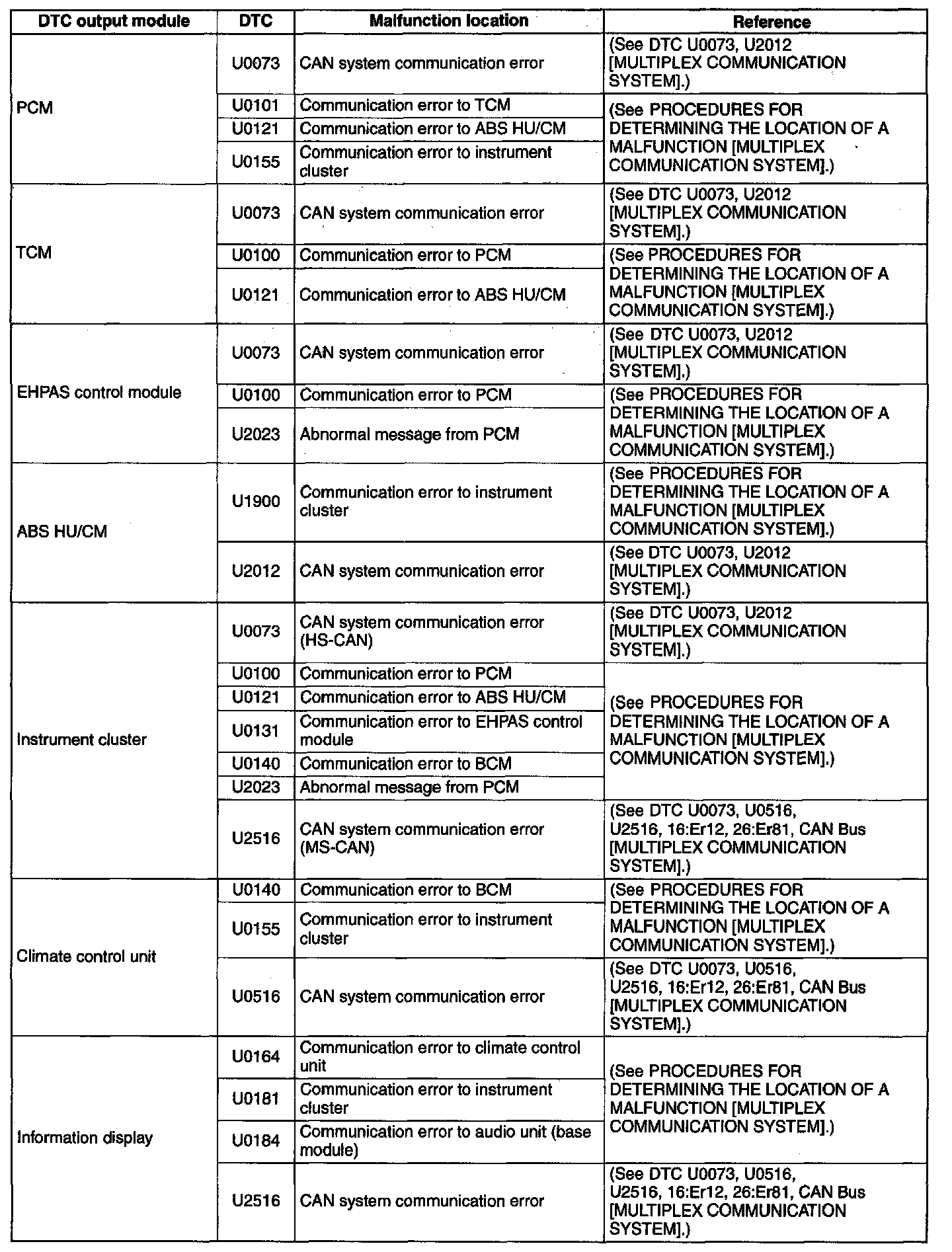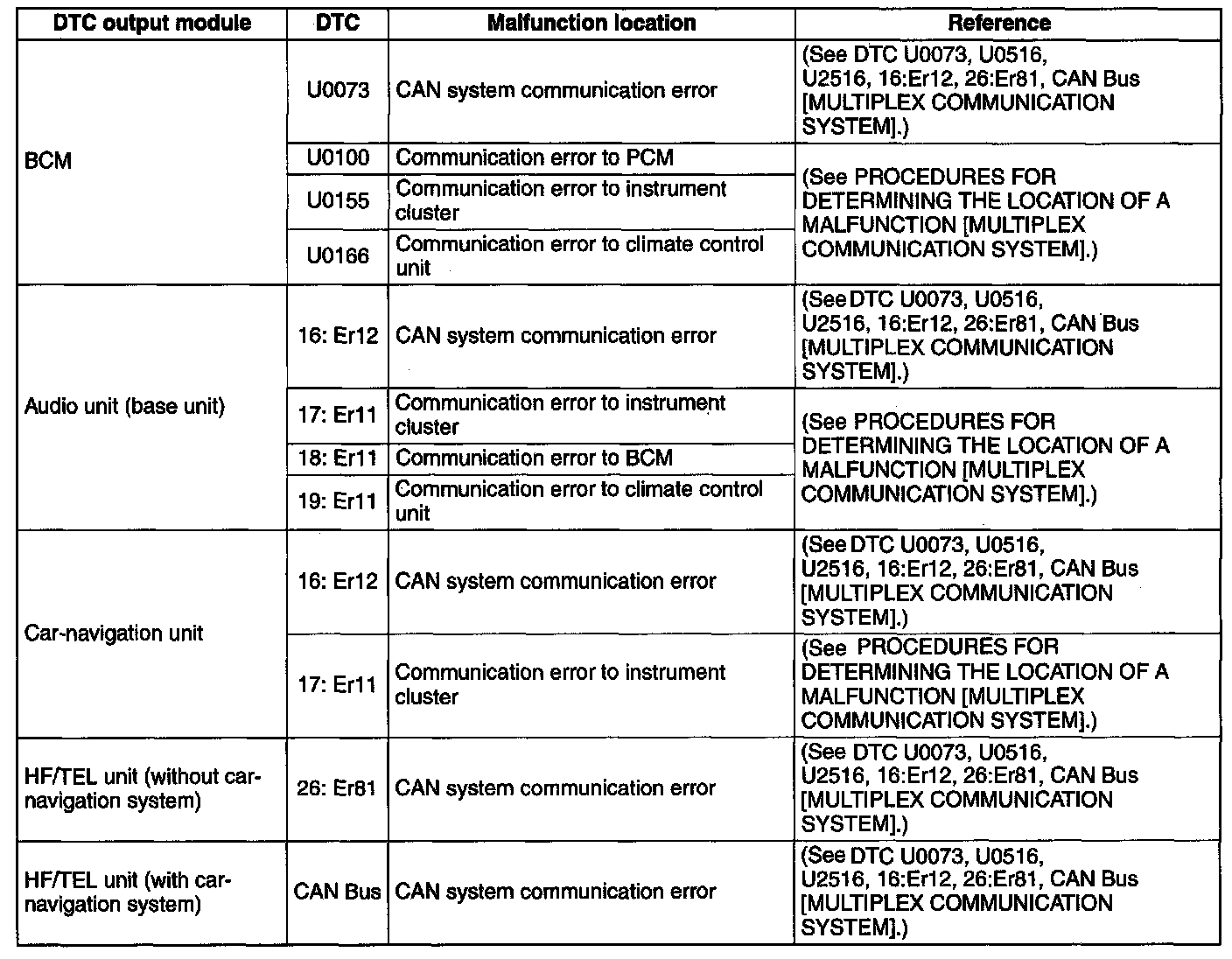 U0073-U0166 / 16:Er12-26:Er81 /CAN Bus: