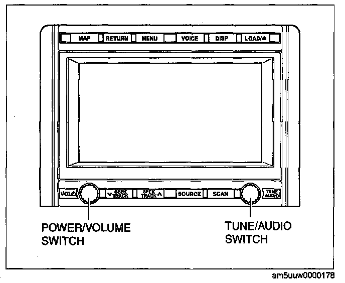 3. While pressing the POWER/VOLUME switch, simultaneously press the TUNE/AUDIO switch for 200 ms or more.
