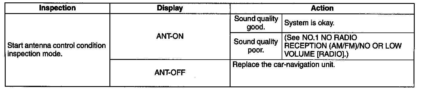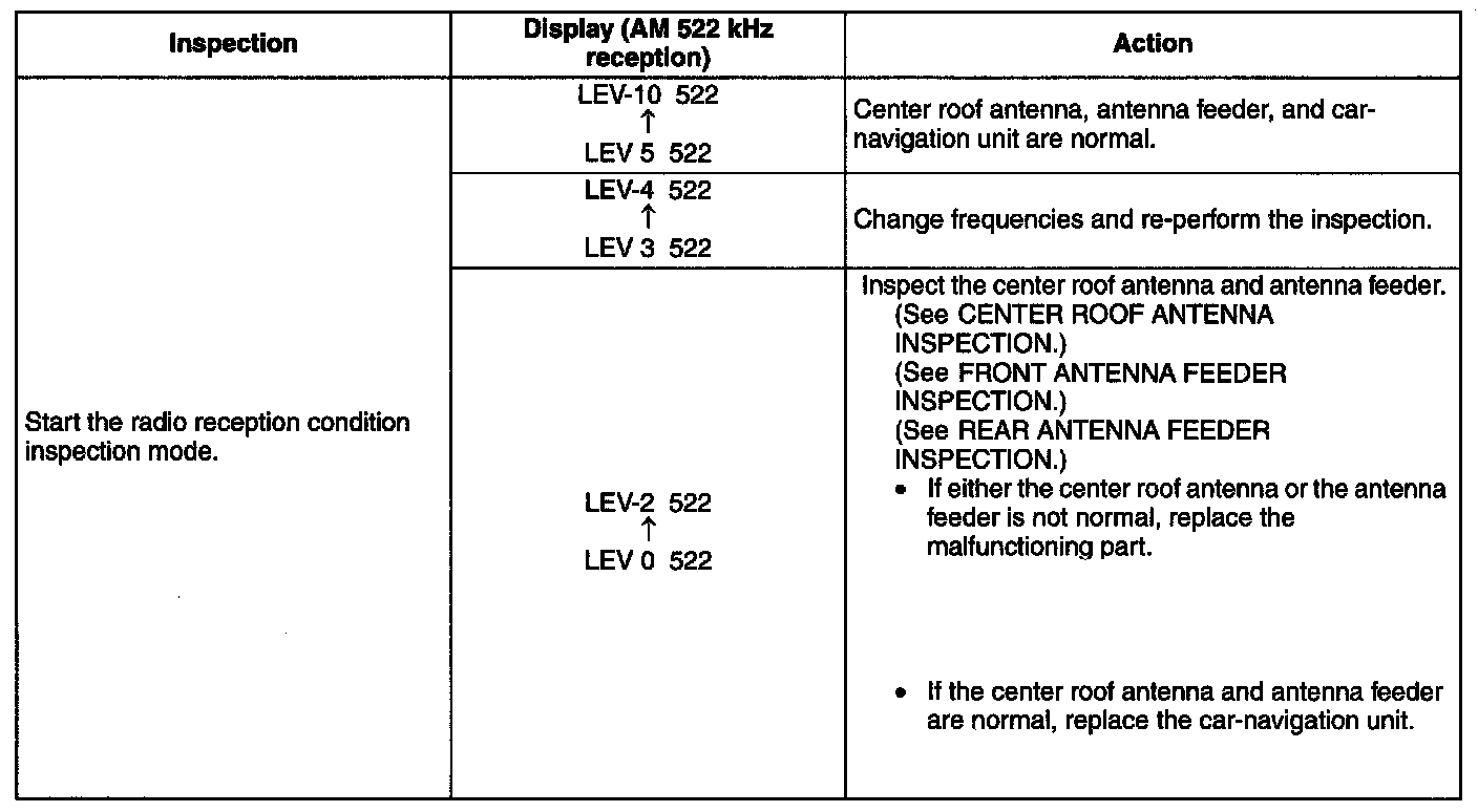 - Even If the system is normal, radio reception may be difficult depending on where the system is inspected (indoors/outdoors, or conditions at the location). Before inspecting the system, verify that radio reception is adequate.