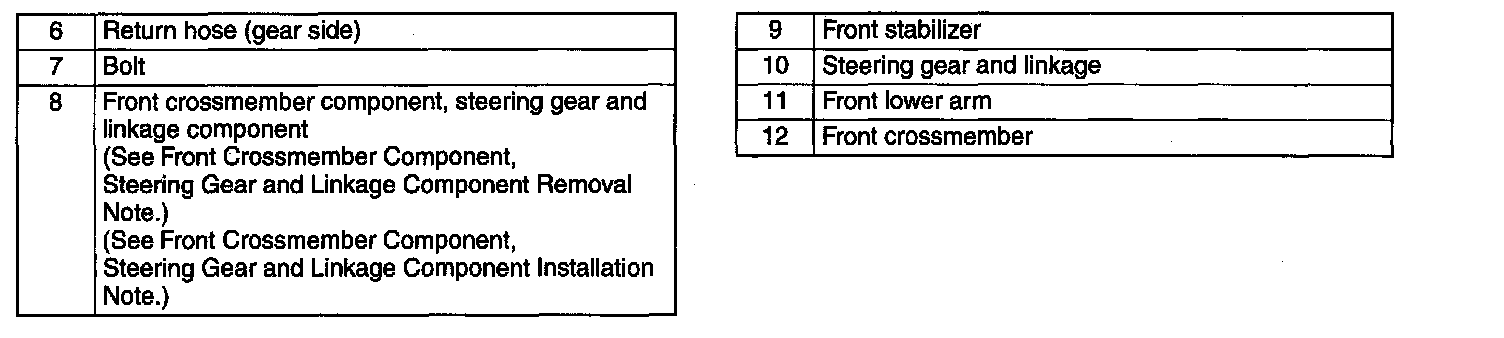 Front Crossmember Component, Steering Gear and Linkage Component Removal Note