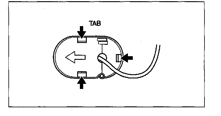 1. Install the ABS hole cover into the body so that the arrow on it is facing toward the outer side of the vehicle.