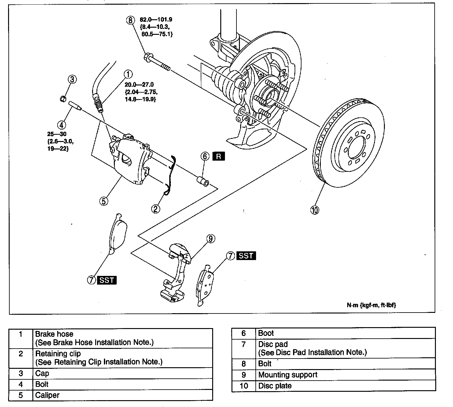 1. Install the brake hose to the caliper.