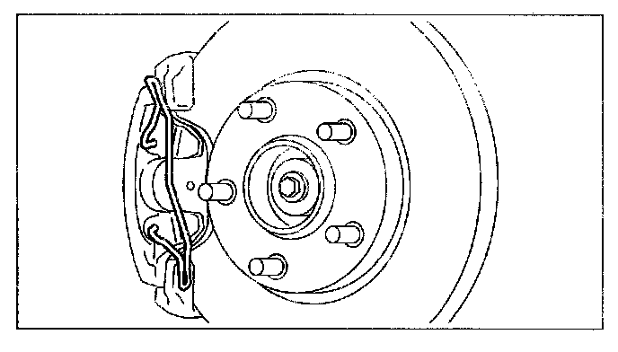 1. Temporarily install the retaining clip to the caliper and mounting support as shown in the figure.