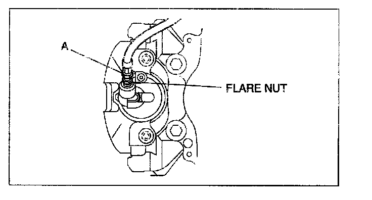 2. Tighten the flare nut while holding the brake hose at point A with a spanner or equivalent.