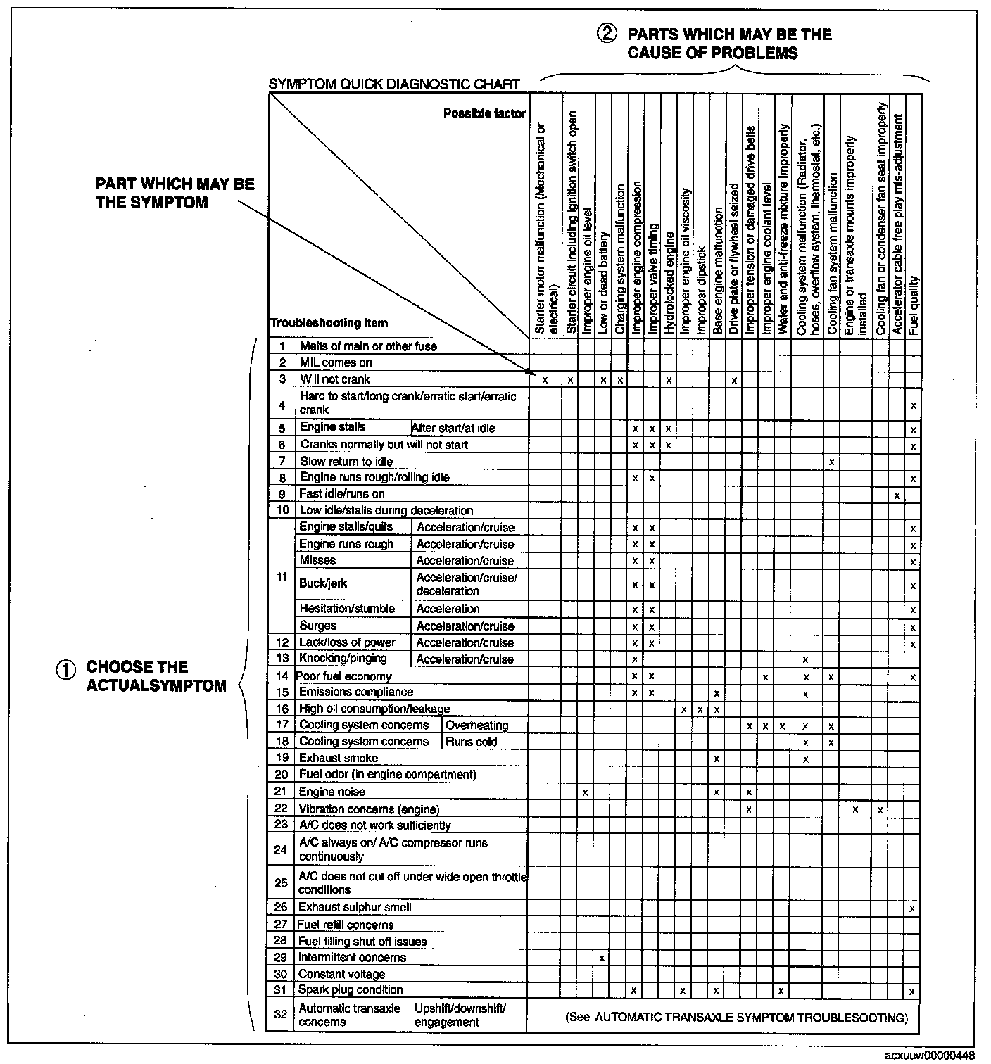 - The chart is effective in quickly narrowing down the relation between symptom and cause of the malfunction. It also specifies a range of common causes when multiple malfunction symptoms occur.
