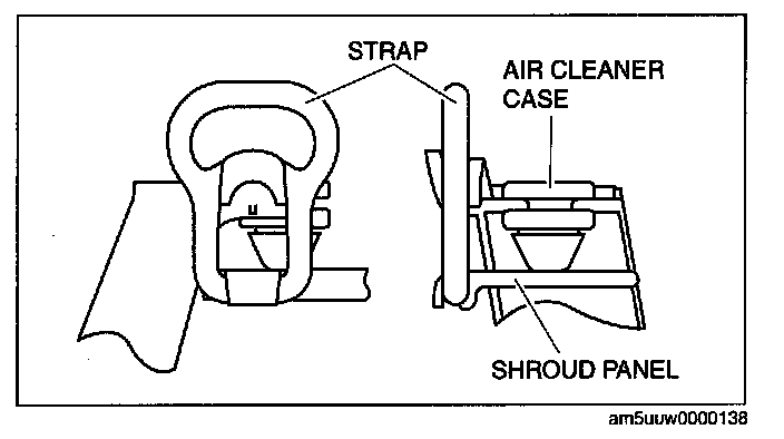 1. Using the strap, secure the shroud panel and the air cleaner case as shown in the figure.