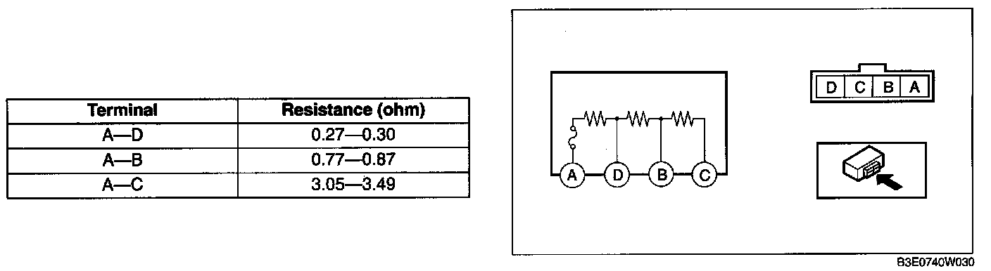 Verify that the resistance between the resistor terminals is as shown in the table.