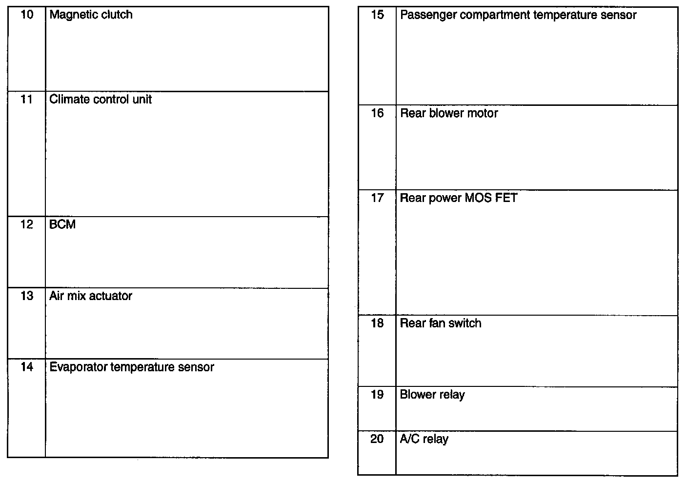 HVAC Control System Location Index [Manual Air Conditioner]: